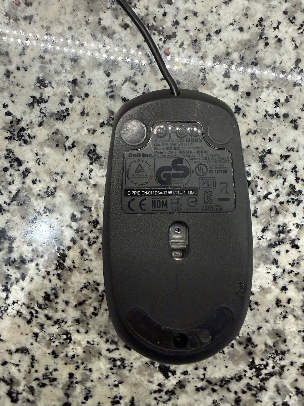 Dell MS111-P Wired USB 3-Button Scroll Wheel Optical Mouse N889 - Black