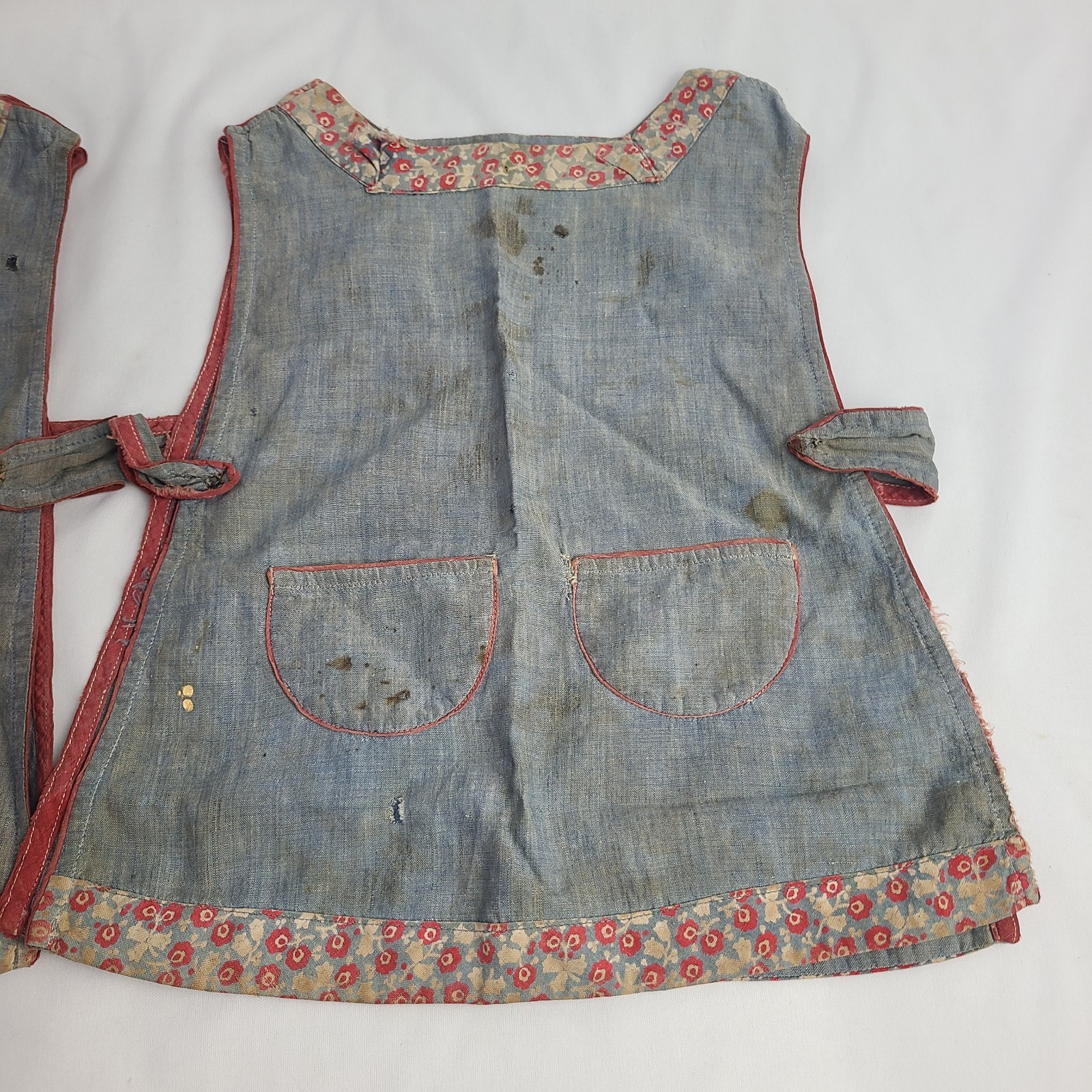 • 2 Vintage 50's Handmade Girls Apron Smock Dress Handmade Snaps Garden Painting
