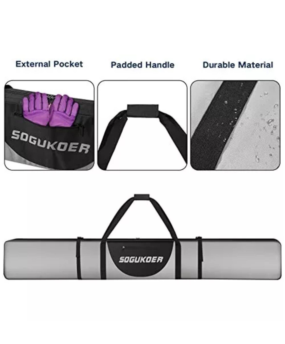 Sogukoer Ski Snowboard Bag Grey And Black Padded Water Resistant Lightweight