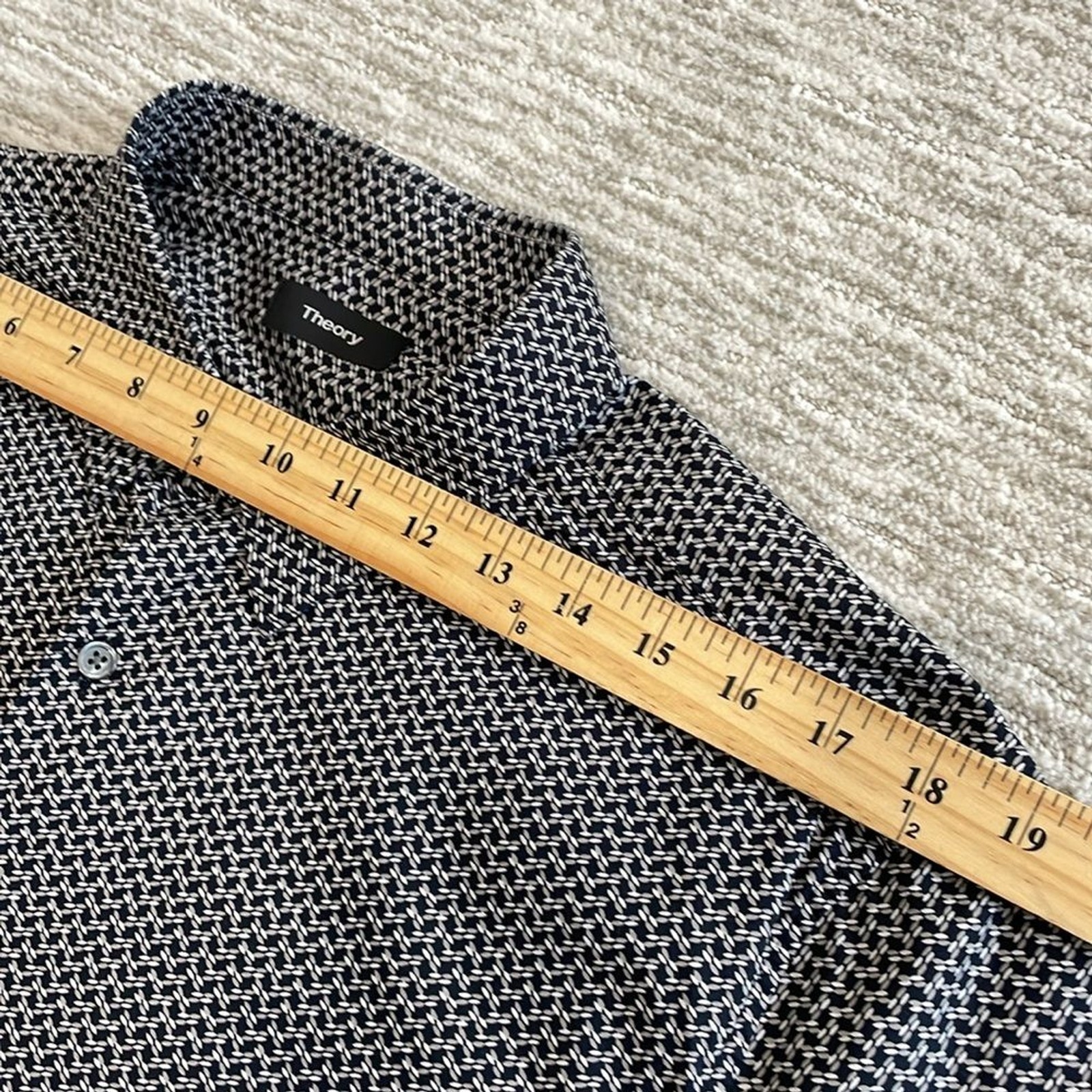 как выглядит Theory Mens Geometric Print Dress Shirt Size XL Long Sleeve Classic Button Down фото