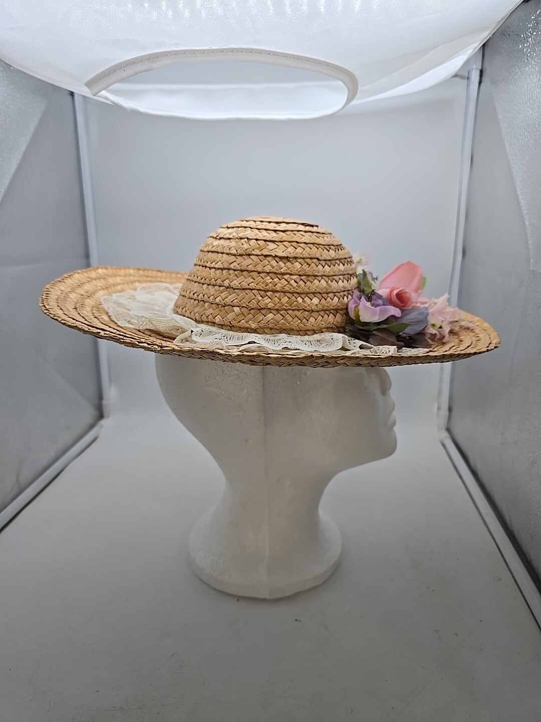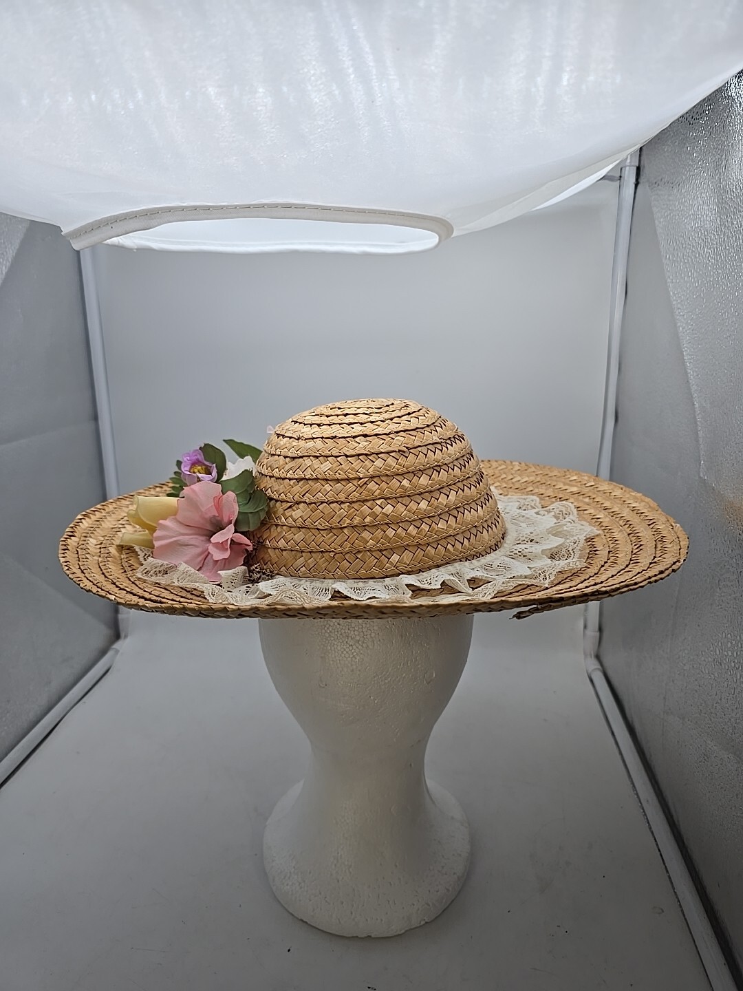 Girl's Sun Hats Bucket Cap Child Flowers Ribbon Flat Straw Hat SZ XS