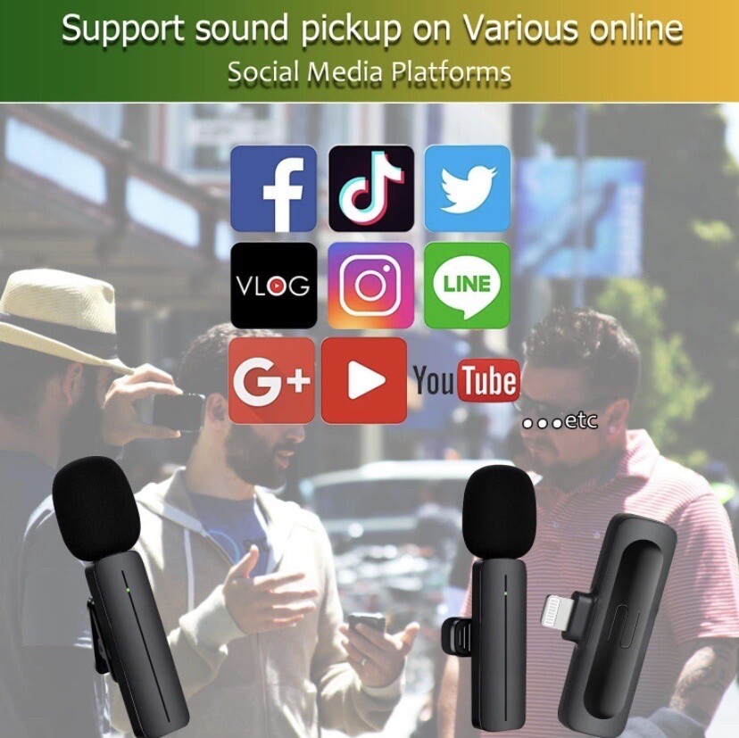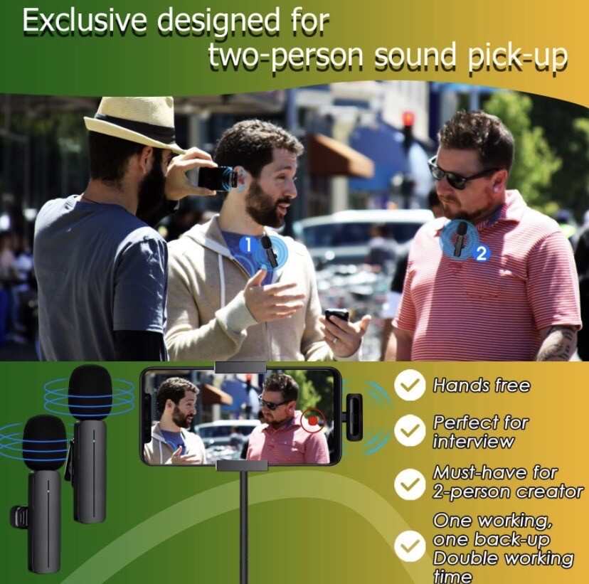 2 Packs Wireless Lavalier Microphone Audio Video Recording Mini for I OS NEW
