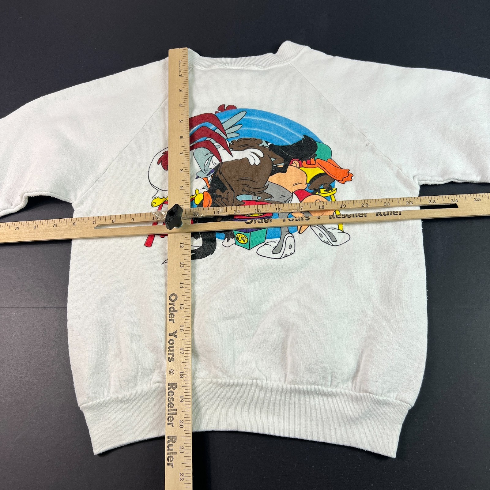 как выглядит VTG 90s ACME Looney Tunes Sweatshirt Kids Large White Doubled Sided Crewneck фото