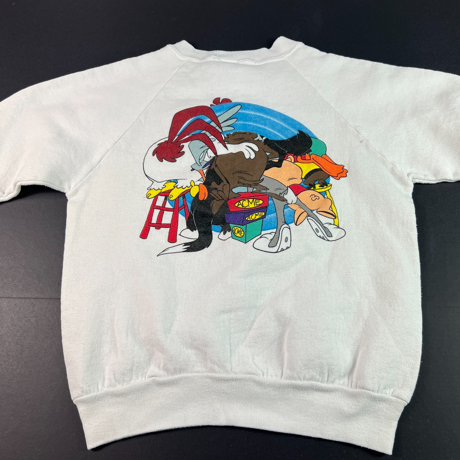 VTG 90s ACME Looney Tunes Sweatshirt Kids Large White Doubled Sided Crewneck