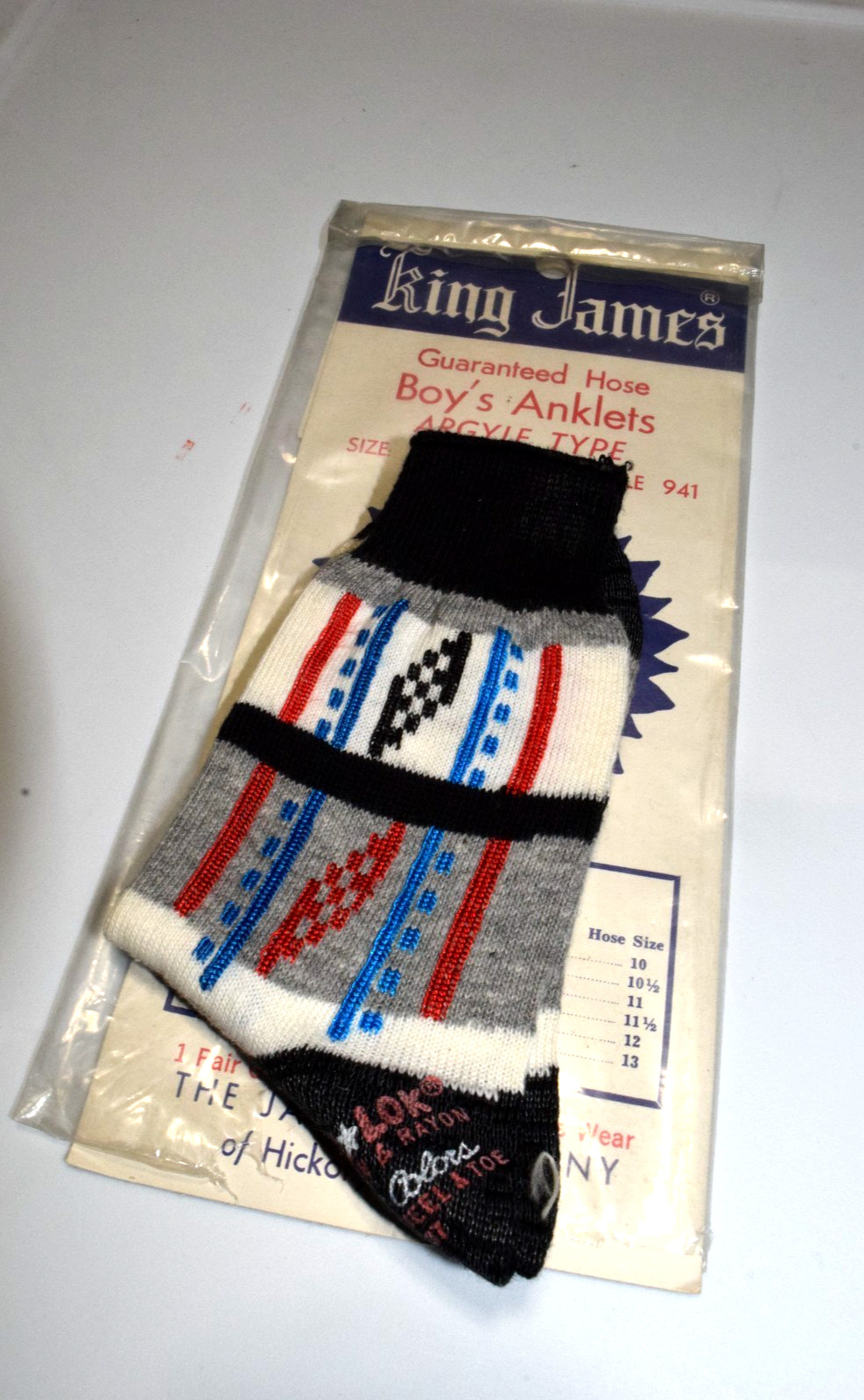 как выглядит Vintage Argyle Socks King James 40s 50s Boys Size 7.5" Checkered Flags 6 x 6 фото