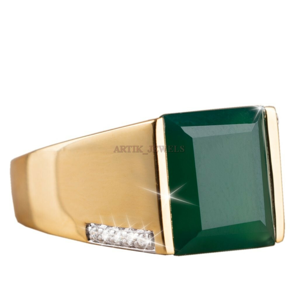 как выглядит Natural Green Onyx Gemstone with Gold Plated 925 Sterling Silver Ring 1302 фото