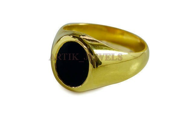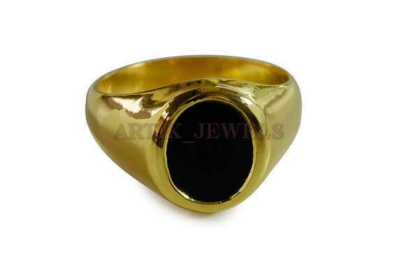 как выглядит Natural Black Onyx Gemstone with Gold Plated 925 Sterling Silver Ring 1213 фото