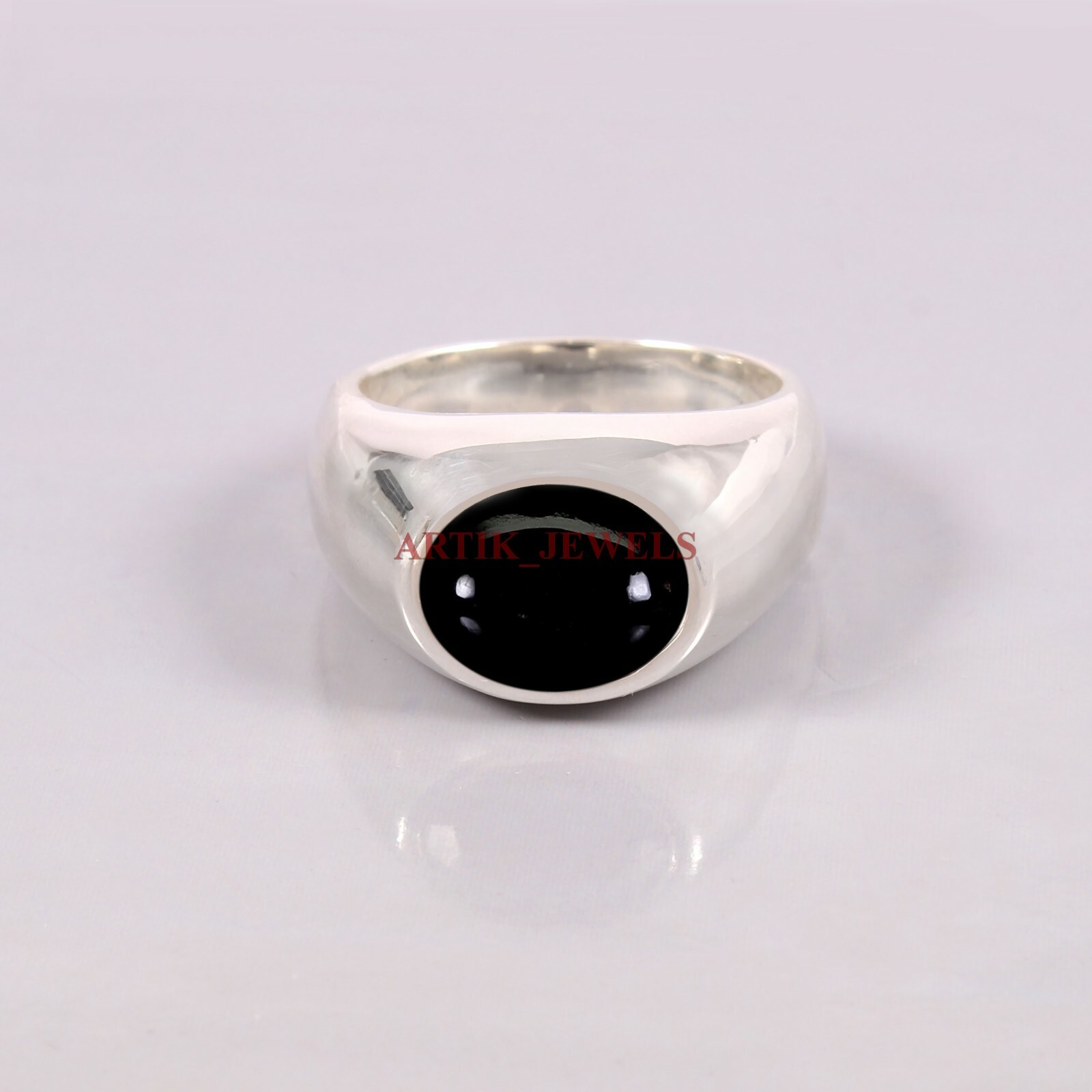 как выглядит Natural Black Onyx Gemstone with 925 Sterling Silver Ring for Men