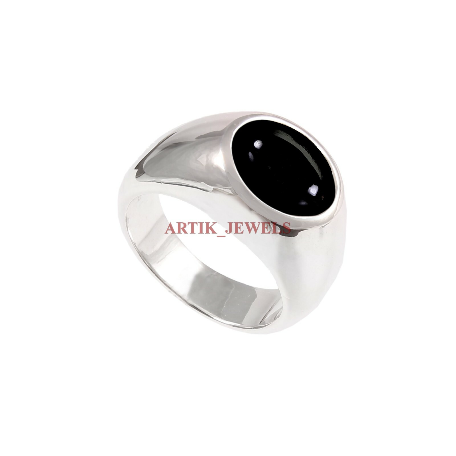 Natural Black Onyx Gemstone with 925 Sterling Silver Ring for Men's 4728