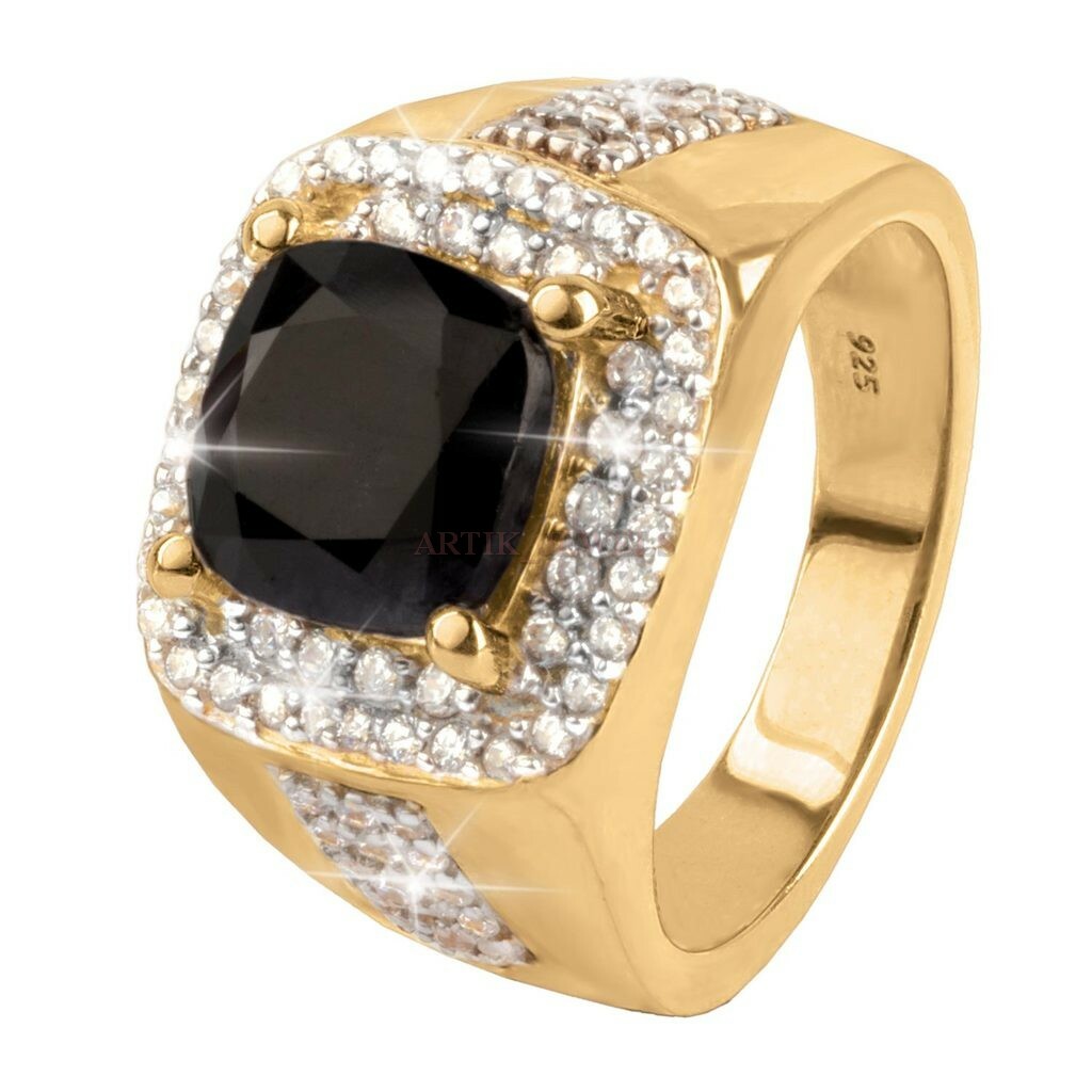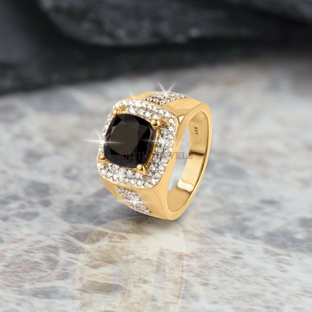как выглядит Natural Black Onyx Gemstone with 14K Gold Plated 925 Sterling Silver Ring 1255 фото