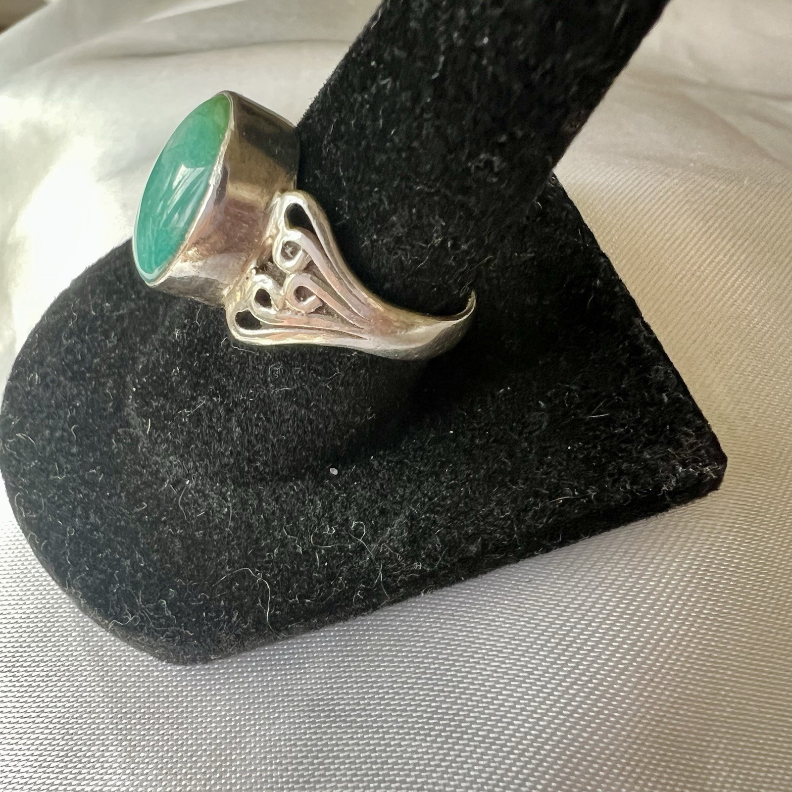 как выглядит 925 Sterling Silver Green Aventurine Cabochon Ring Filigree Setting Sz7.25 фото