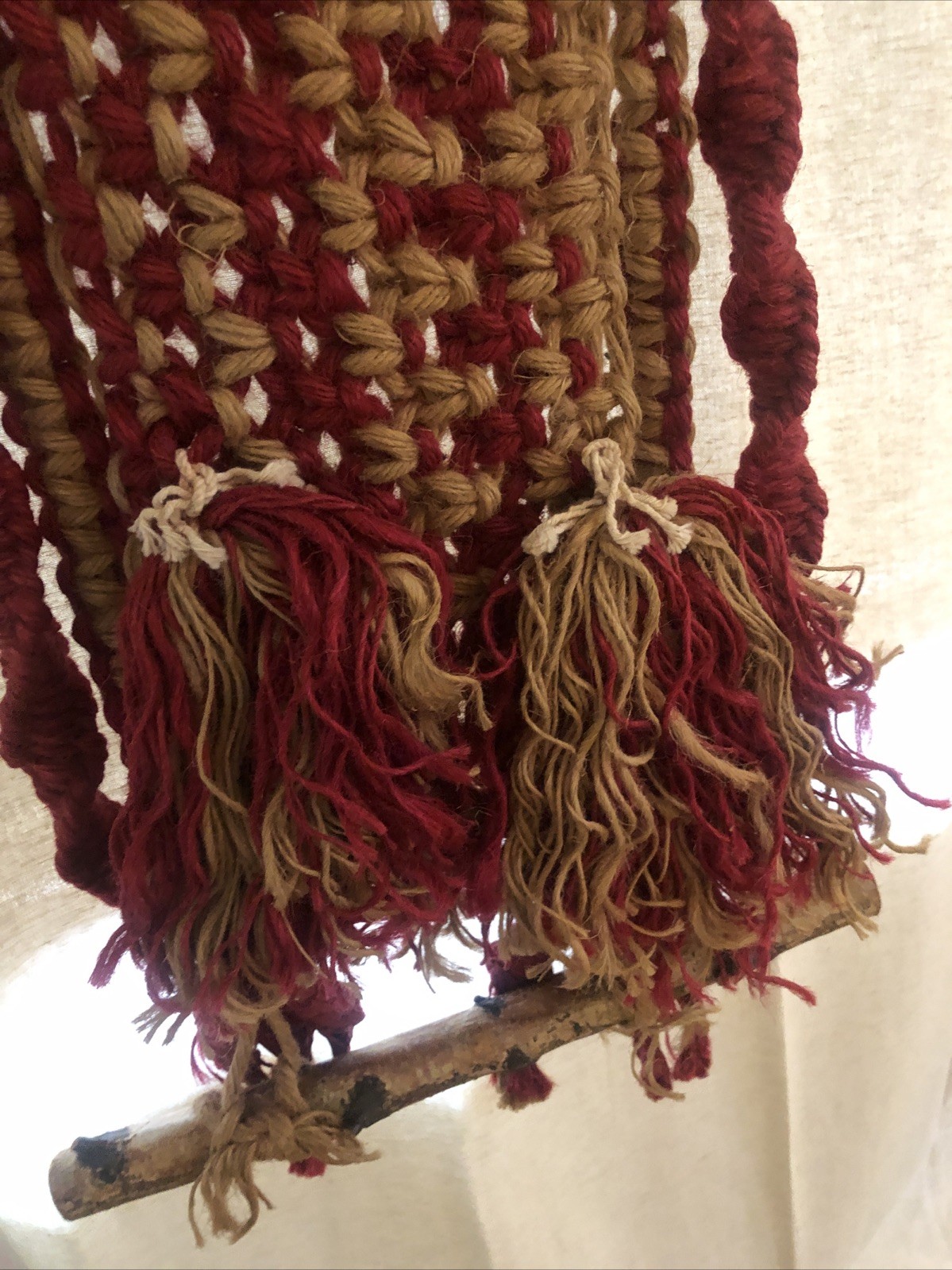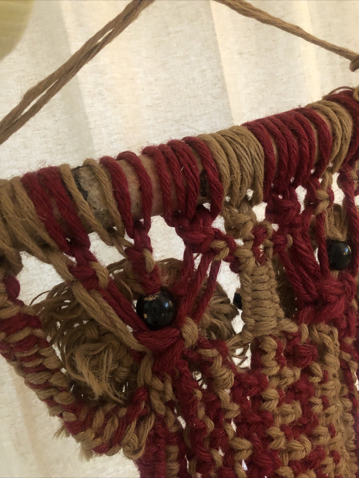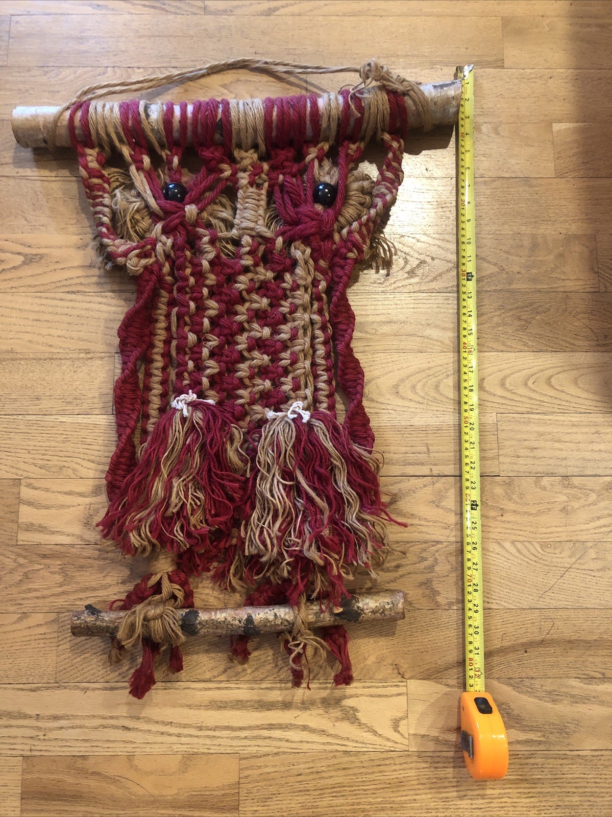 Boho 70s MACRAME OWL WALL HANGING Jute Wood Hippie Rope Art Retro 35 x 23