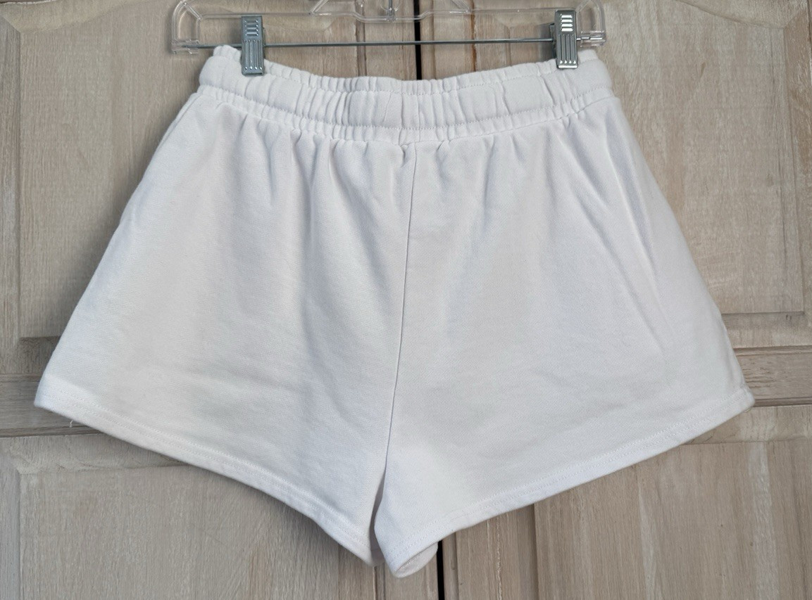 как выглядит Sandy Beach White 2-Piece Cropped Hoodie and Sweat Shorts Set Size Small фото