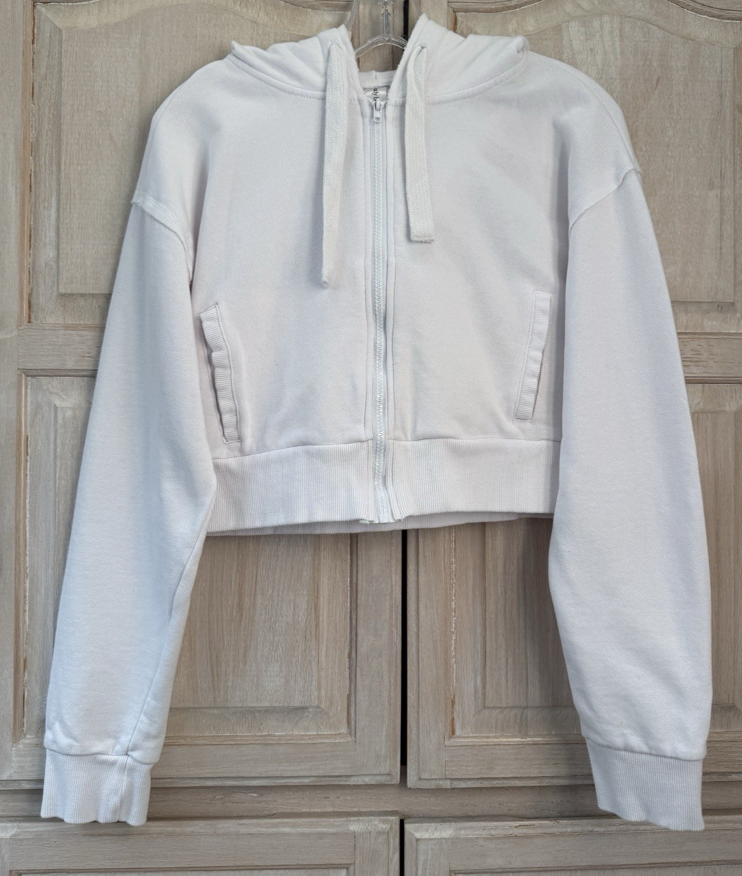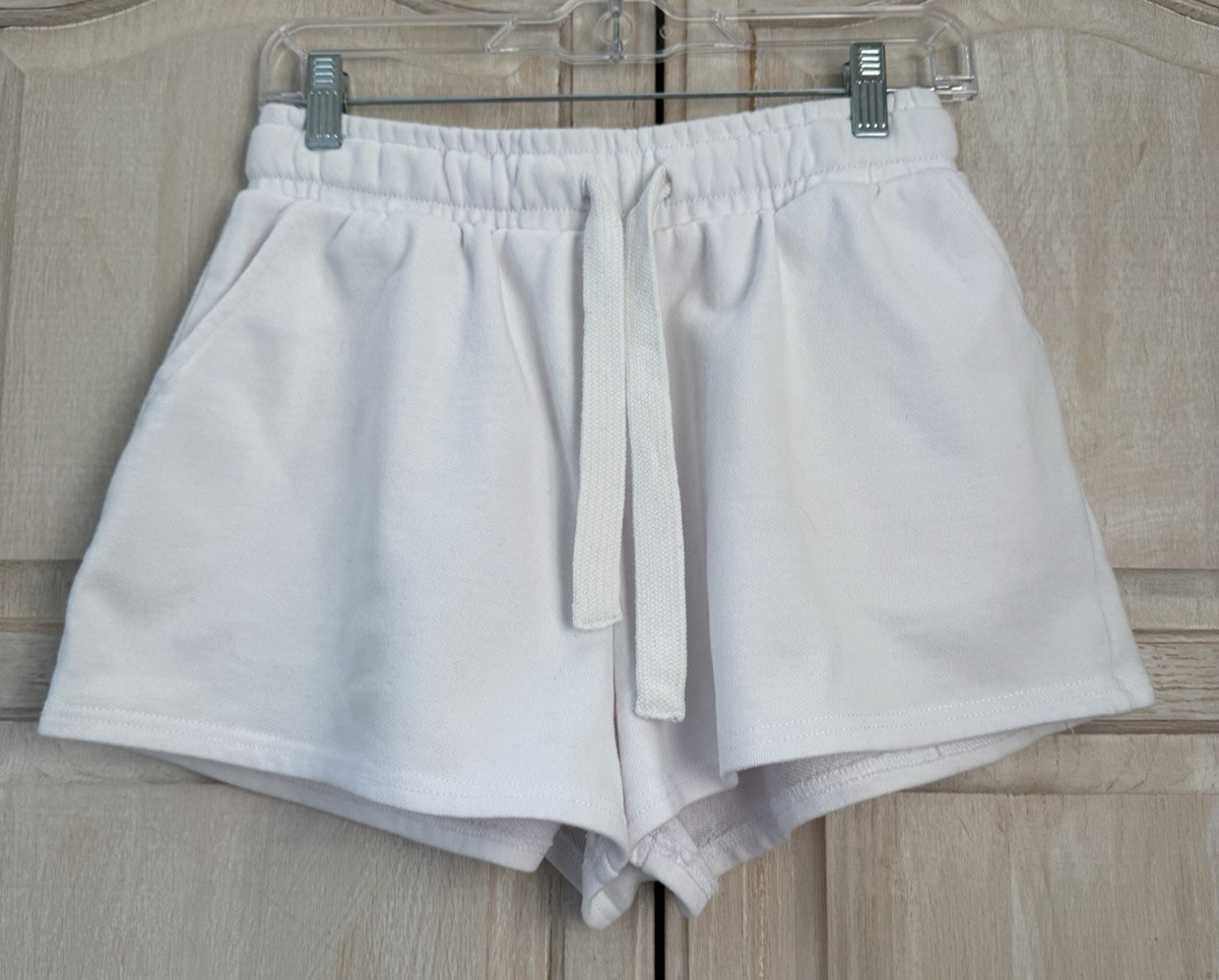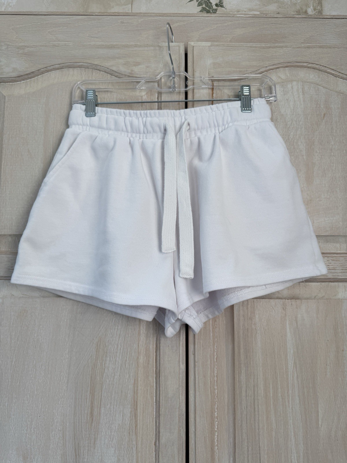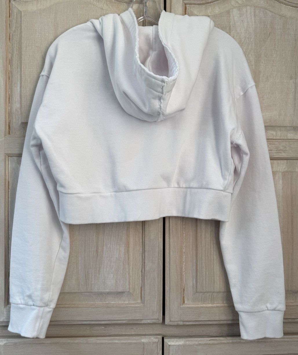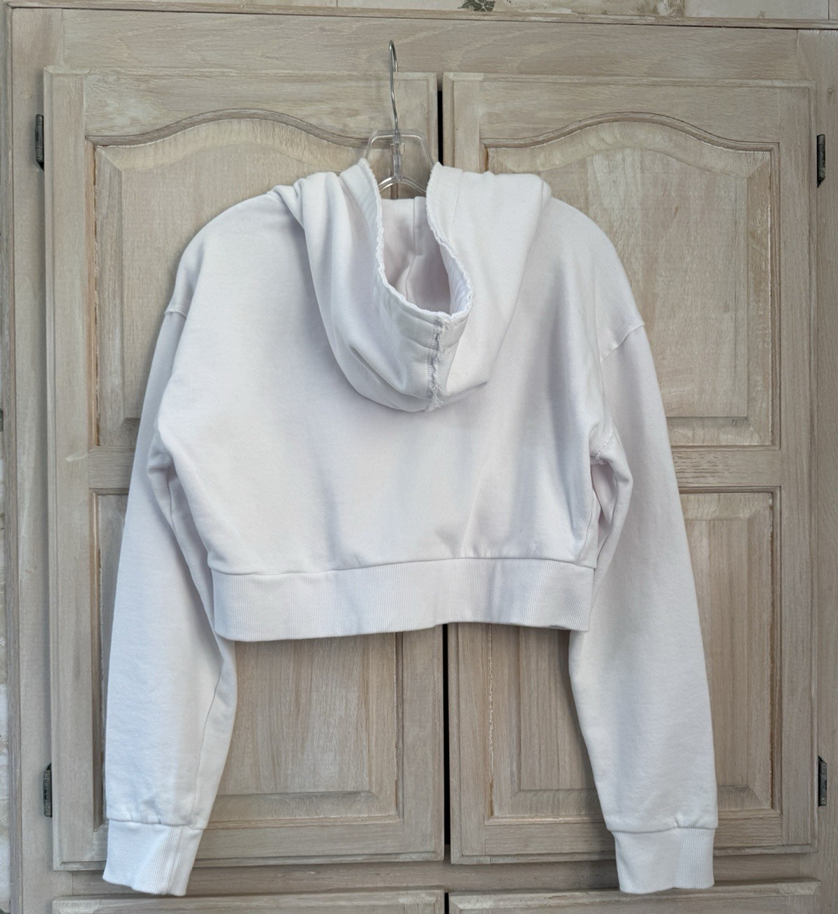 Sandy Beach White 2-Piece Cropped Hoodie and Sweat Shorts Set Size Small
