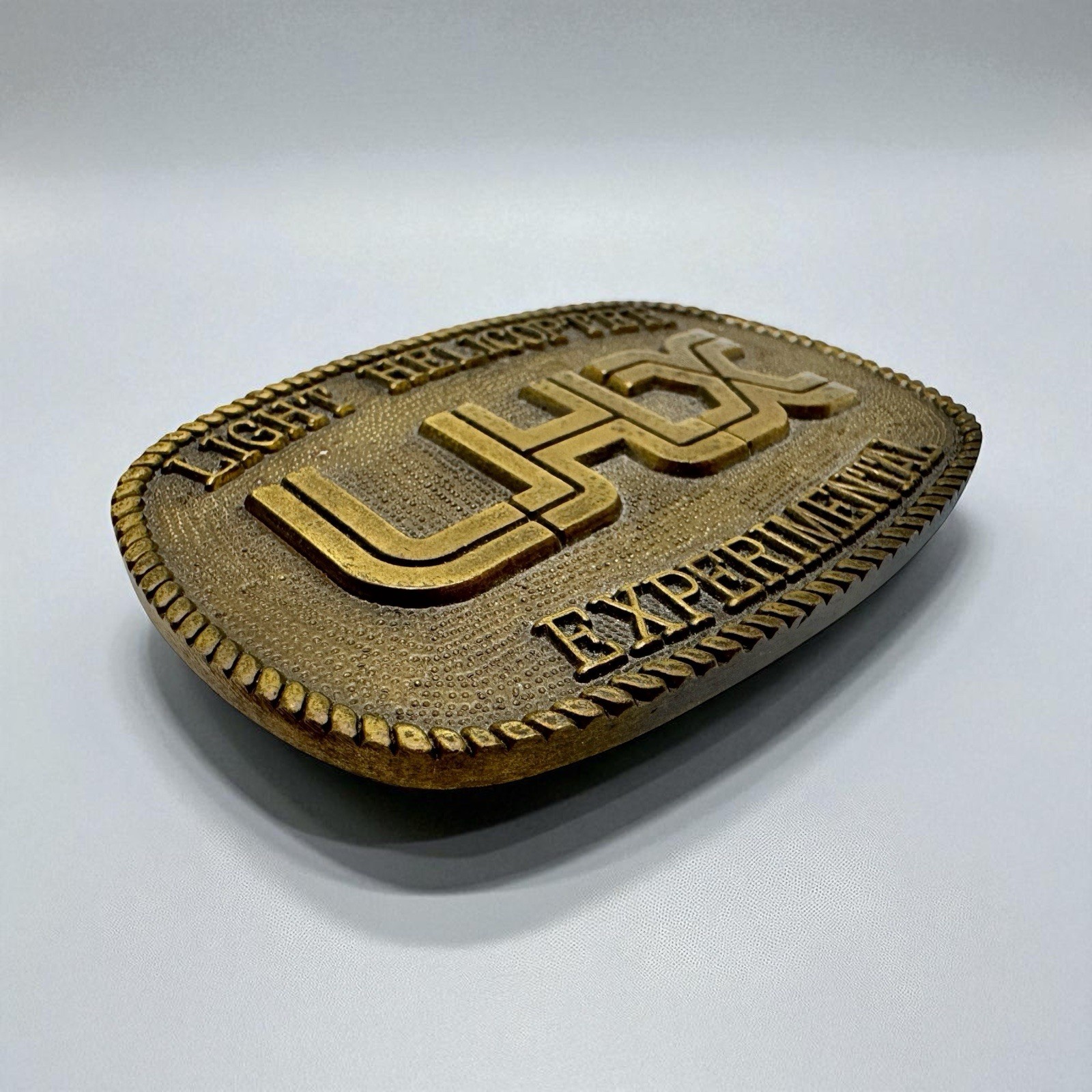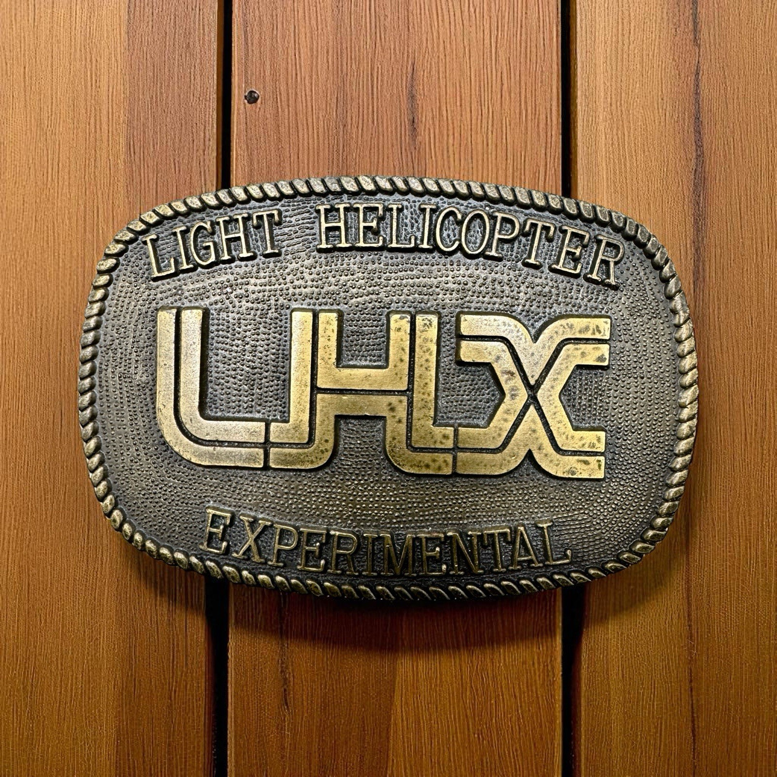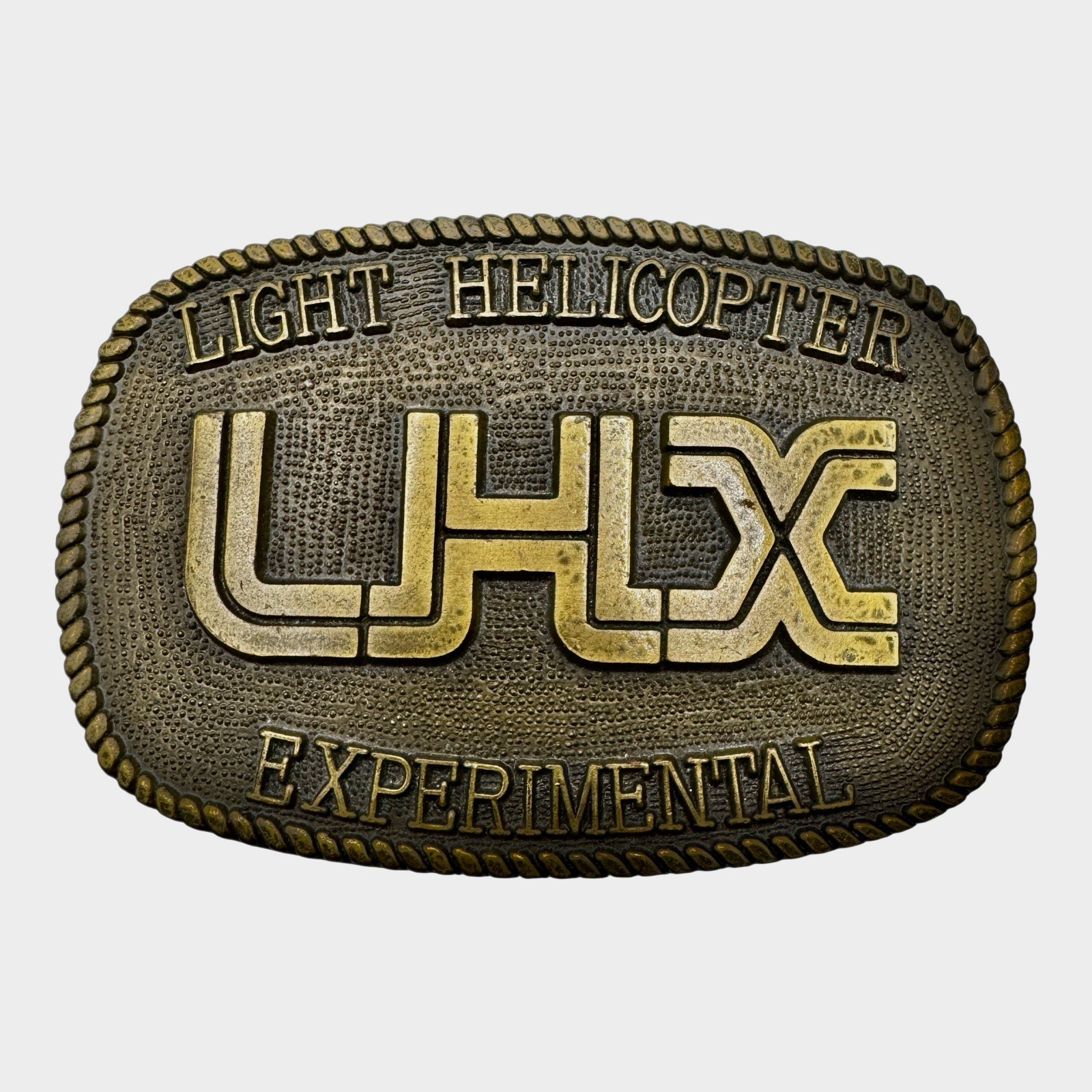 LHX LIGHT HELICOPTER EXPERIMENTALUS ARMY MILITARY Vintage 80s Metal BELT BUCKLE