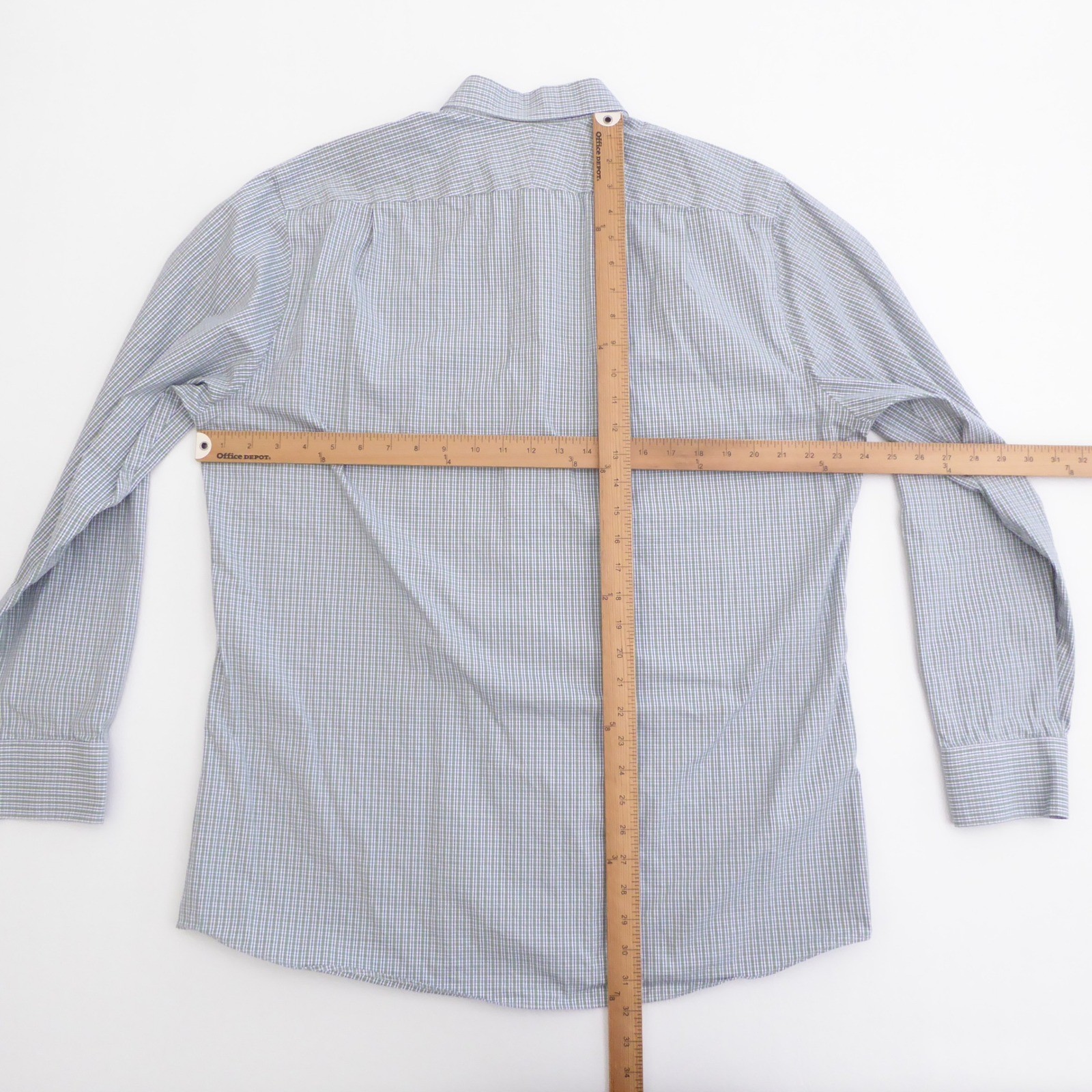 как выглядит Charles Tyrwhitt Mens Dress Shirt Green Blue Check Non-Iron Slim Fit 17 / 36 фото