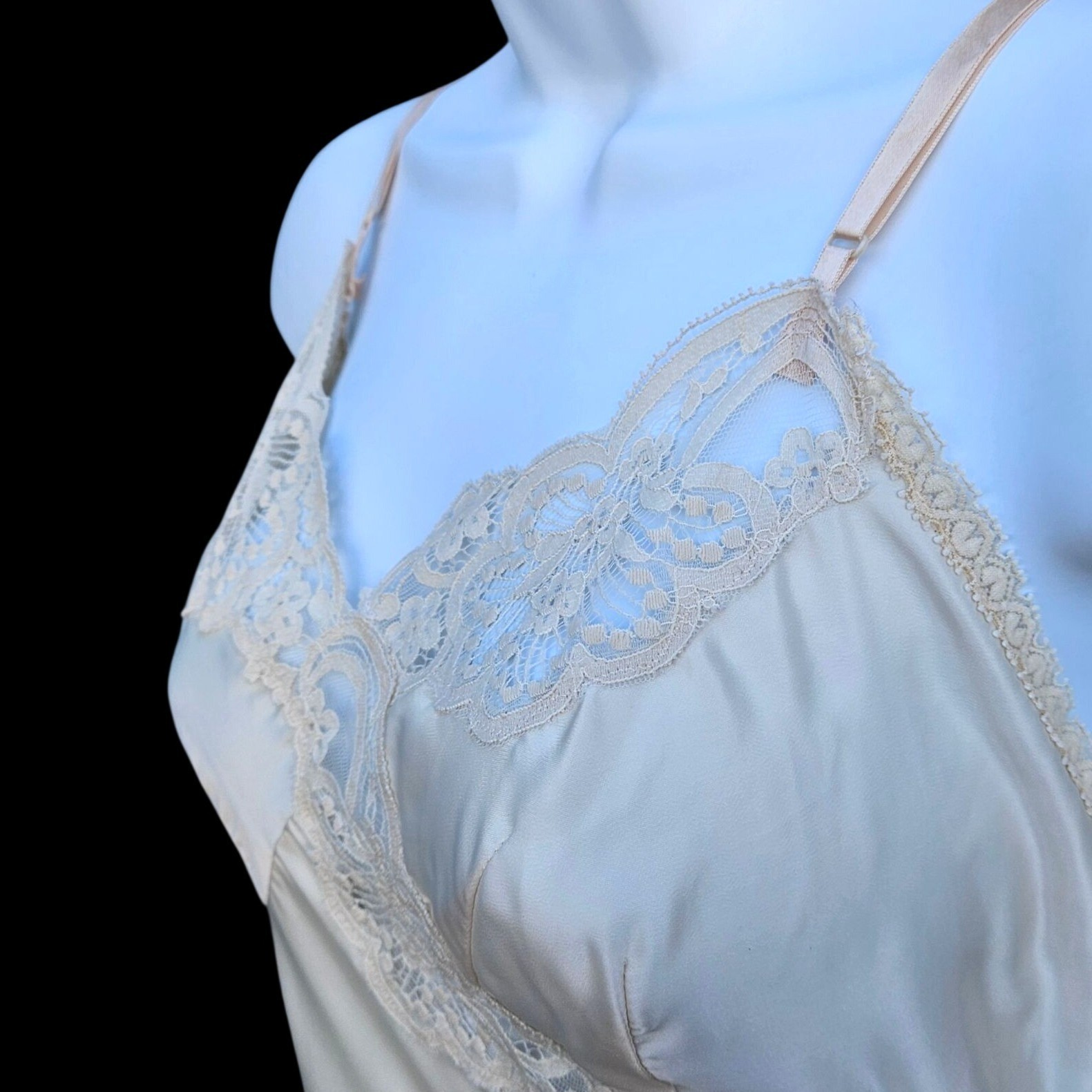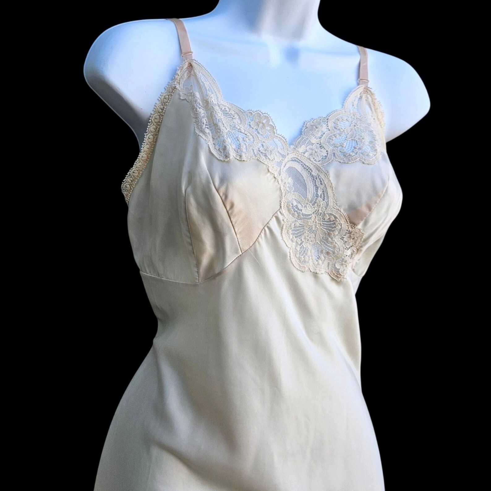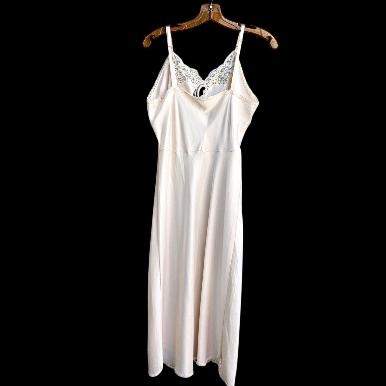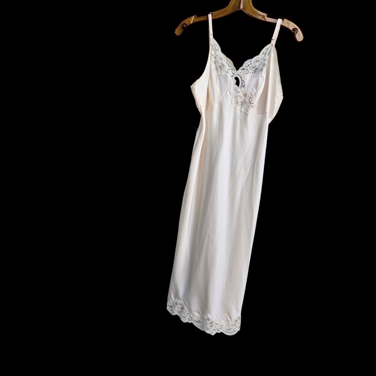 как выглядит Vintage Wonder Maid Nylon Full Slip Ivory Lace Trim M L Nightie Gown Pinholes фото