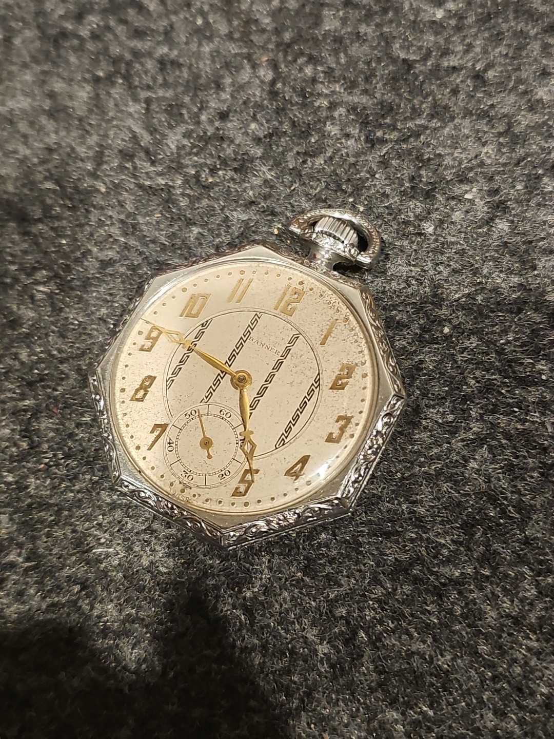Vintage Banner IWC Co Octagonal Pocket Watch - FOR PARTS / REPAIR 43mm