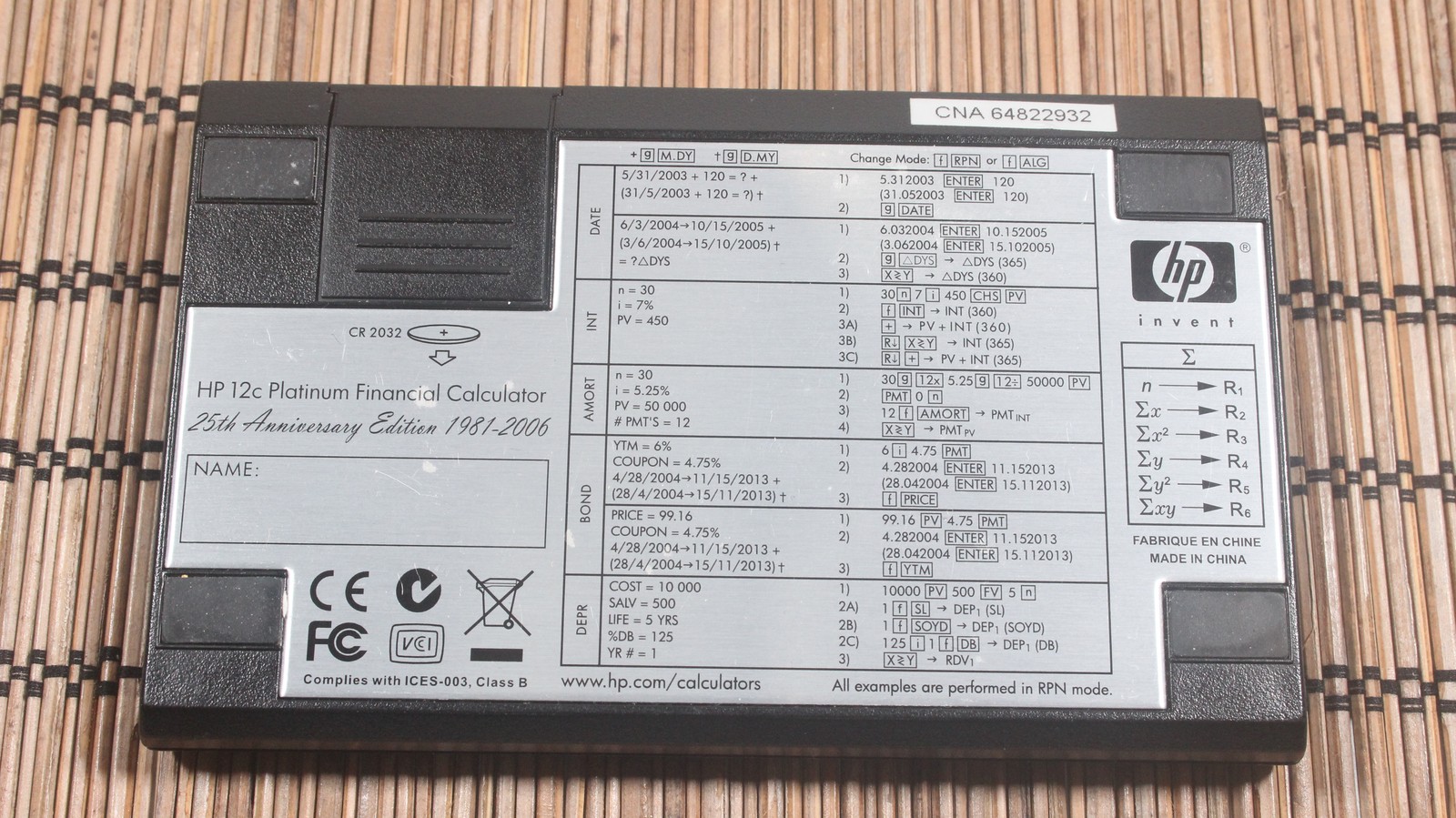 Модель: HP 12C Platinum 25th Anniversary Edition