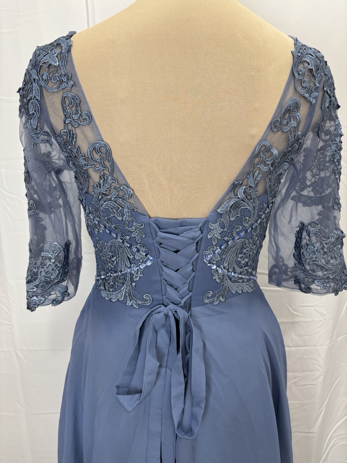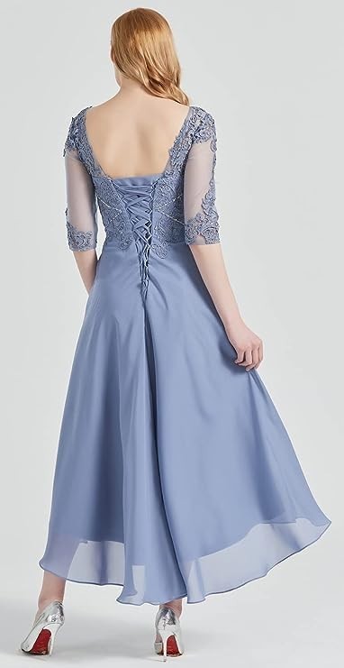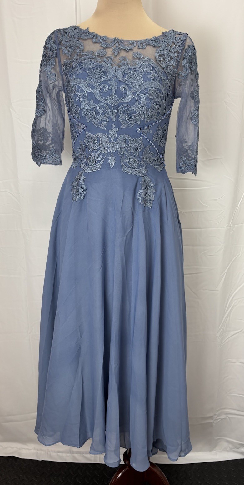 Women's Floral Lace Appliques 3/4 Sleeve Tea Length Party Dress Sz 8
