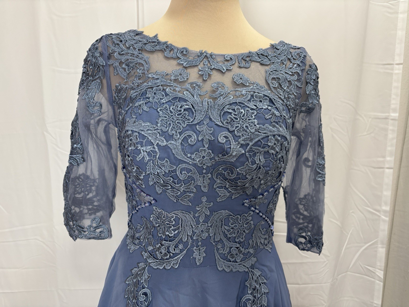 как выглядит Womens Floral Lace Appliques 3/4 Sleeve Tea Length Party Dress Sz 8 фото