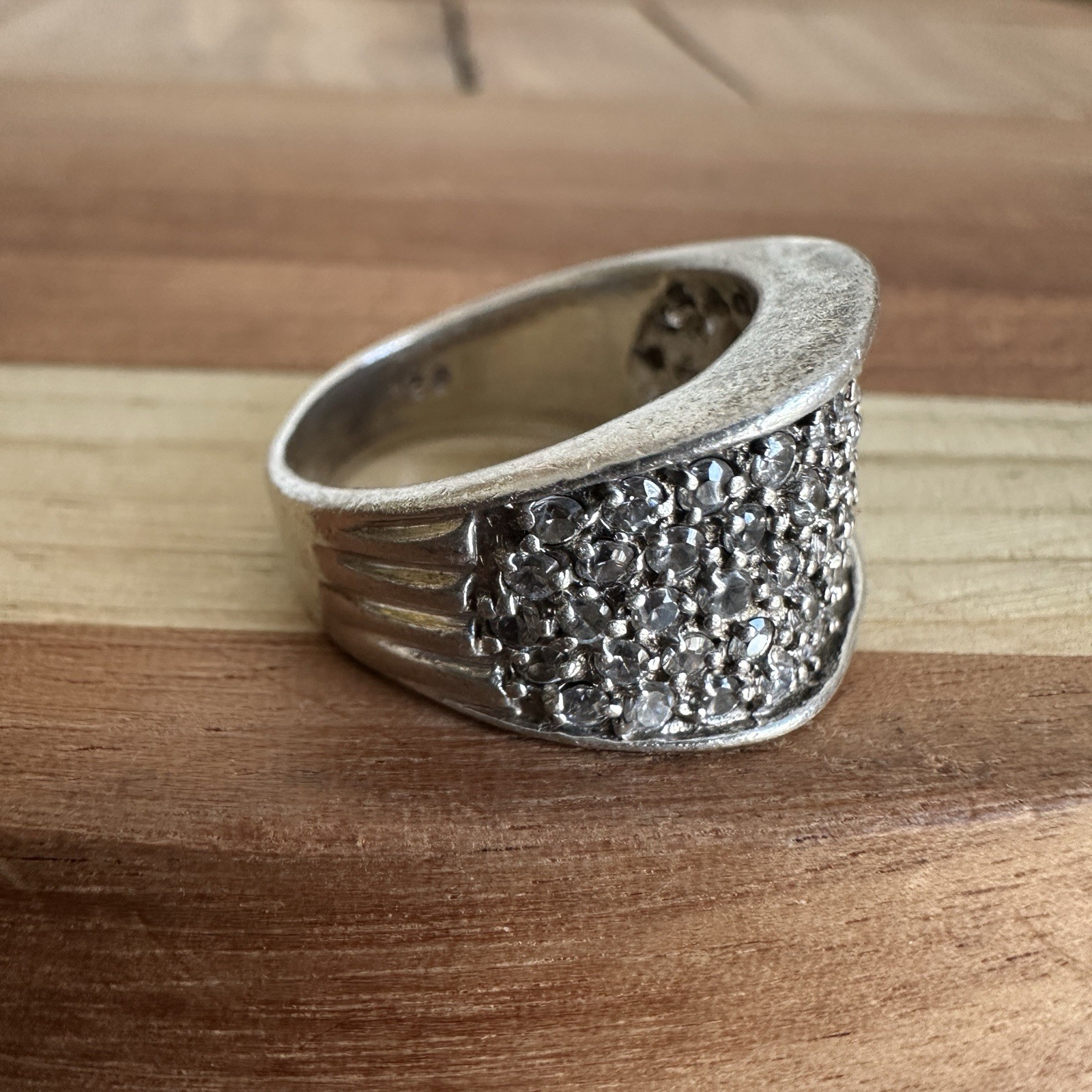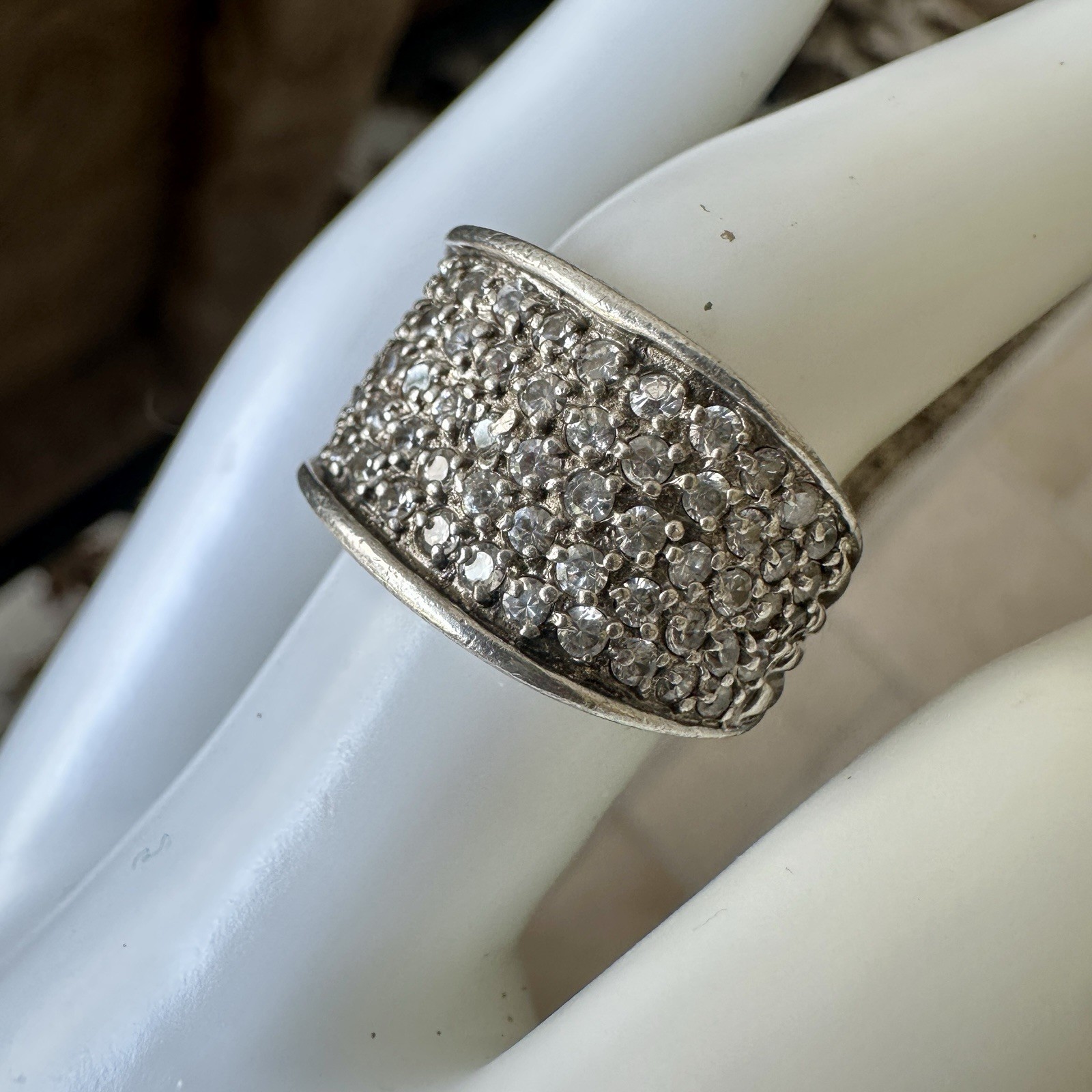 VTG SETA Cluster Ring Size 7.75 Clear Cubic Zirconia 925 Sterling Silver 9.5g