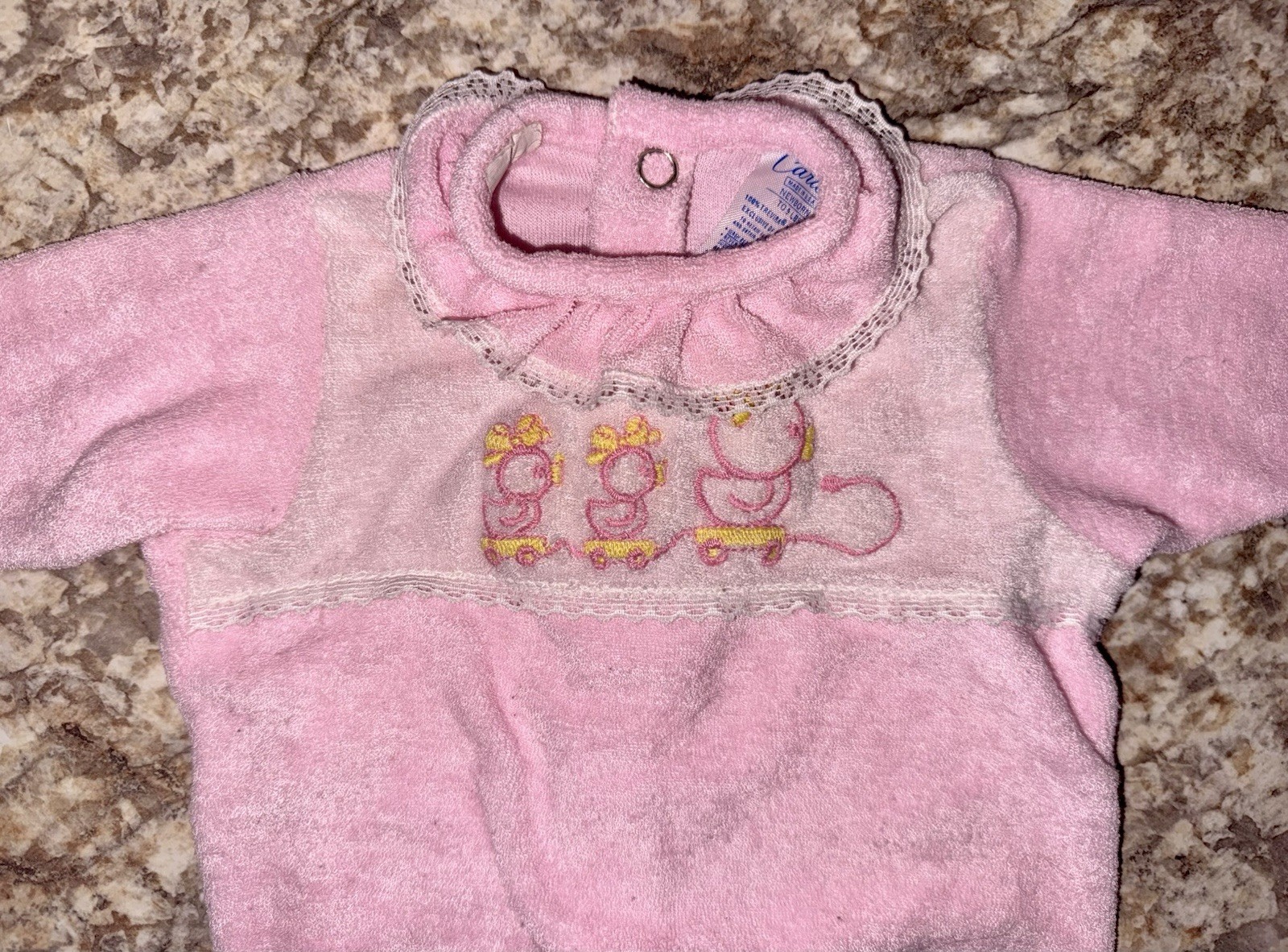 VINTAGE CARTER'S PINK DUCKS FLEECE ONE-PIECE FOOTED BABY PAJAMA SLEEPER NEWBORN