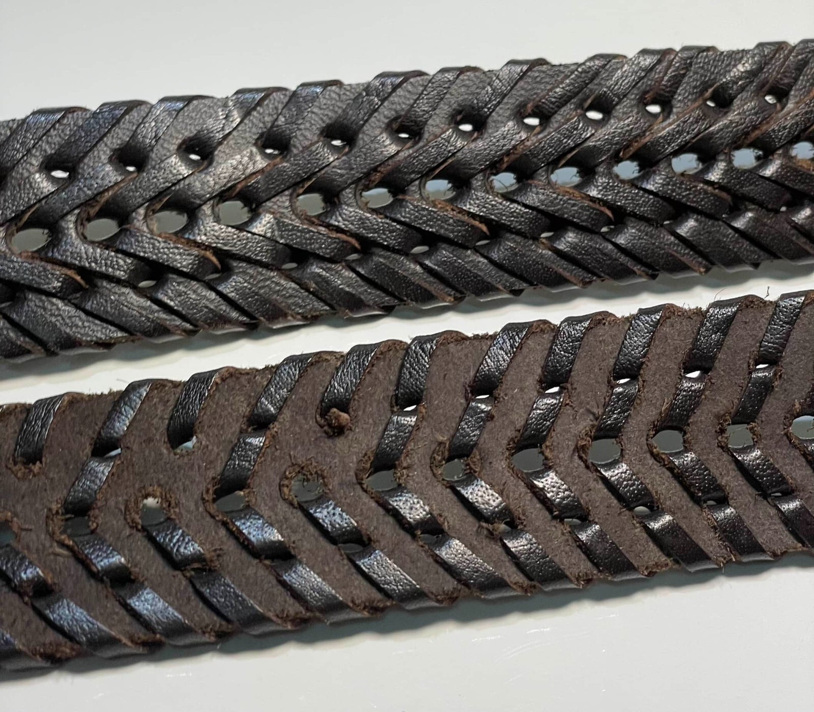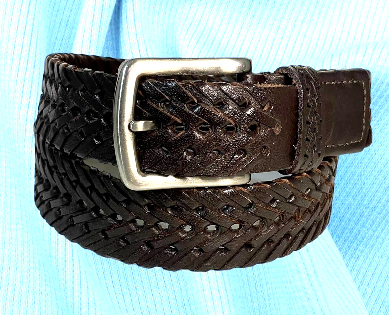 как выглядит Mens Dark Brown Belt Braided Genuine Leather Casual Dress 1-3/8" Wide Medium фото