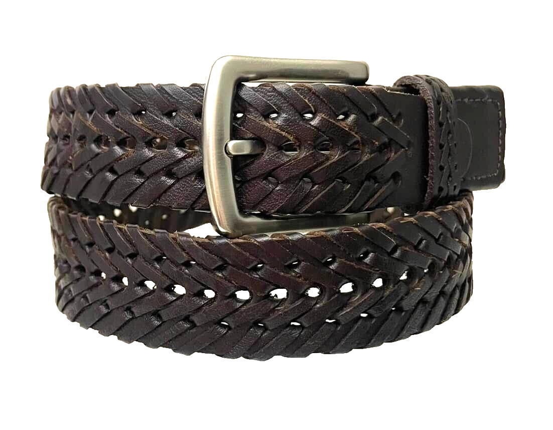 Men's Dark Brown Belt Braided Genuine Leather Casual Dress 1-3/8 Wide Medium