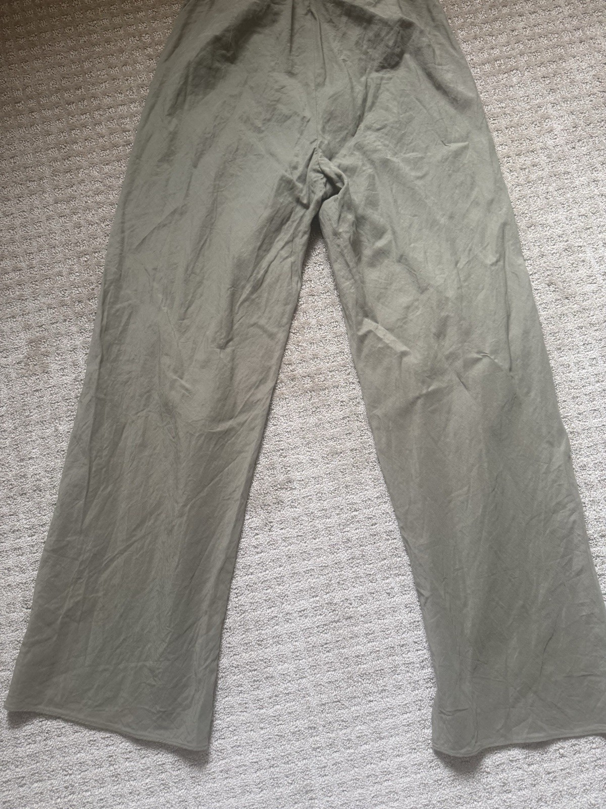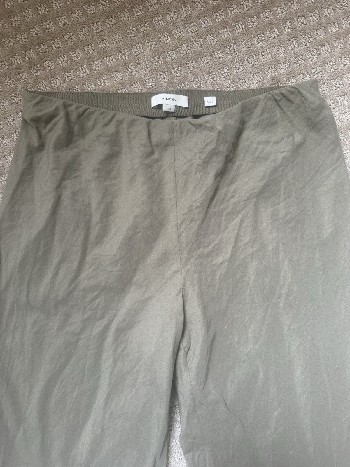 как выглядит Vince Olive Linen Blend Wide Leg Pants Womens M Relaxed Casual Chic фото