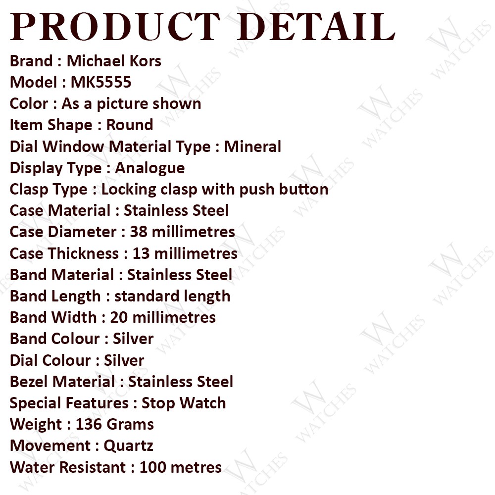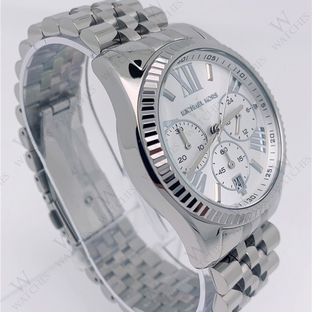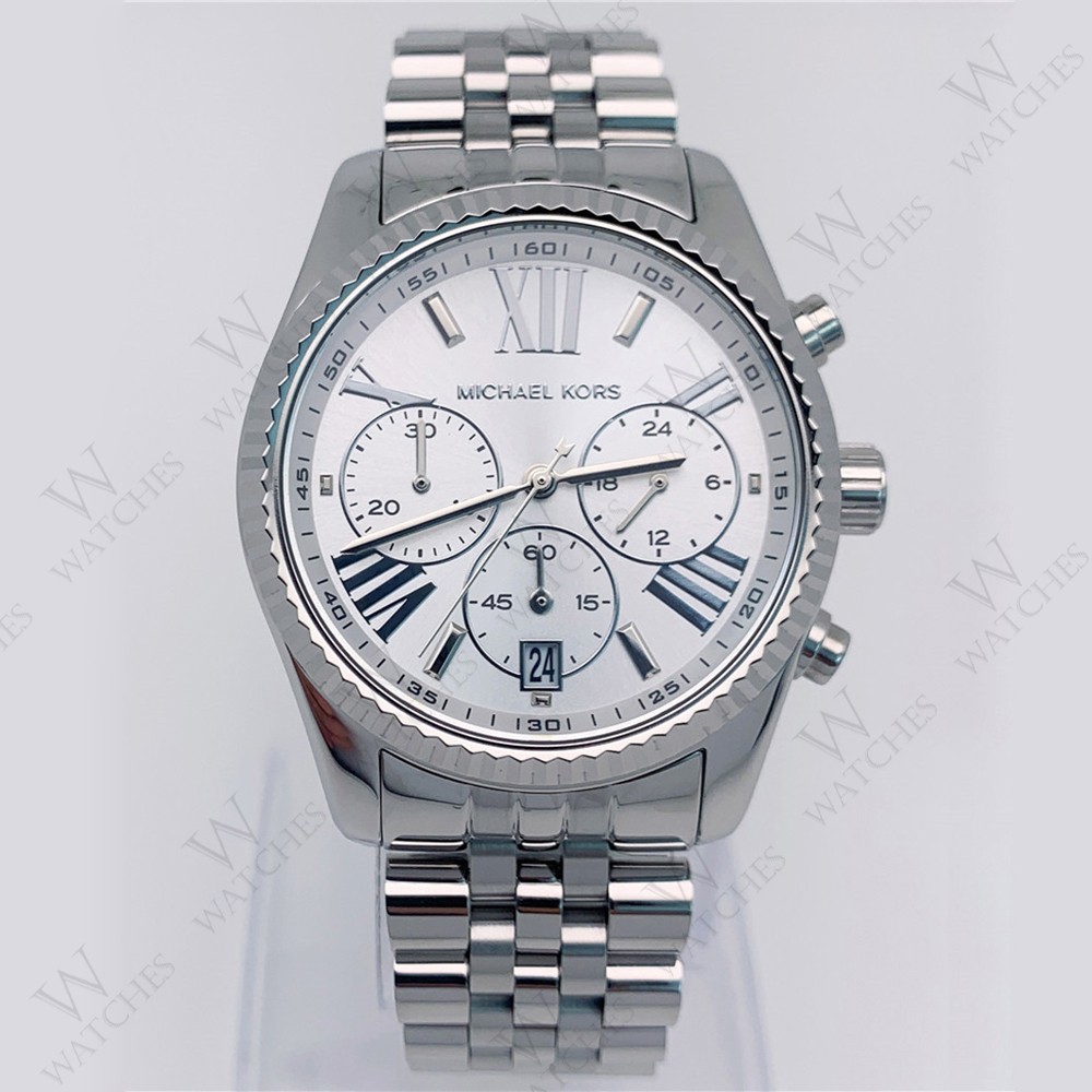 как выглядит Michael Kors MK5555 Lexington Silver Chronograph Stainless Steel Ladies Watch фото