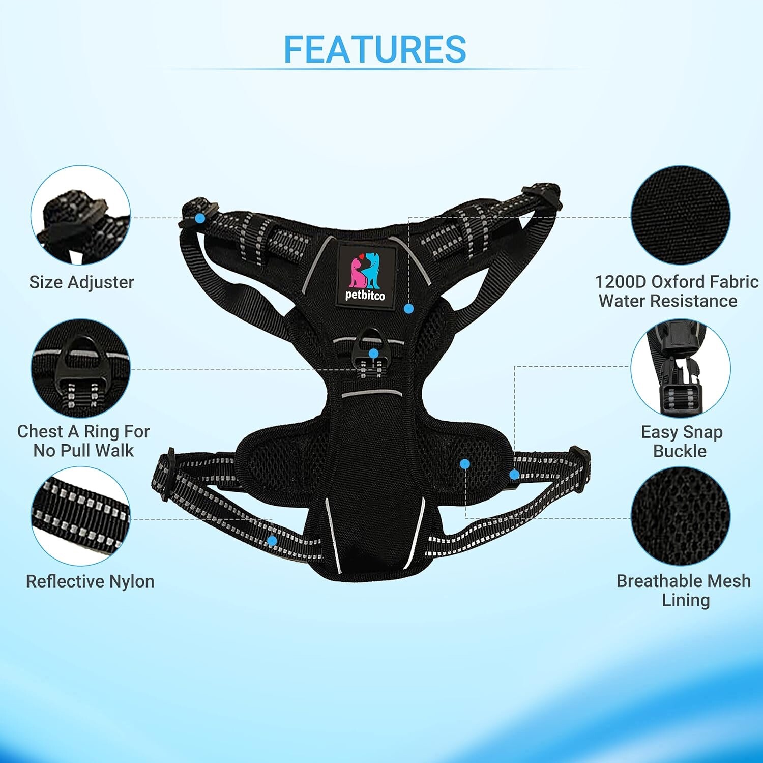 No Pull Dog Harness Reflective Vest Harness w/ 2 Leash Attachments Easy Control