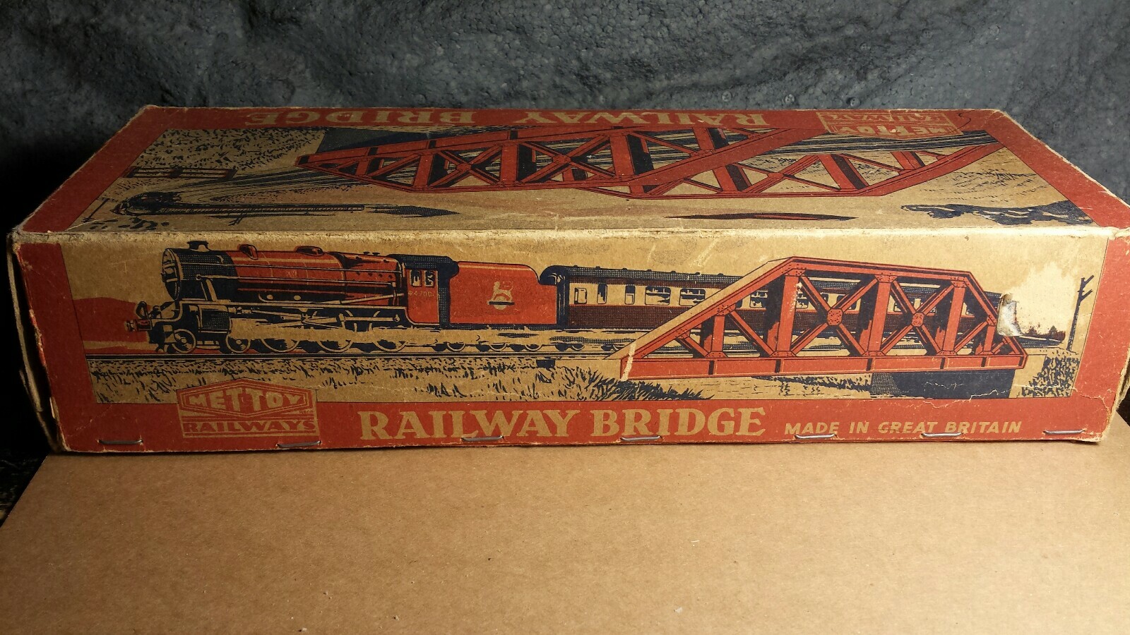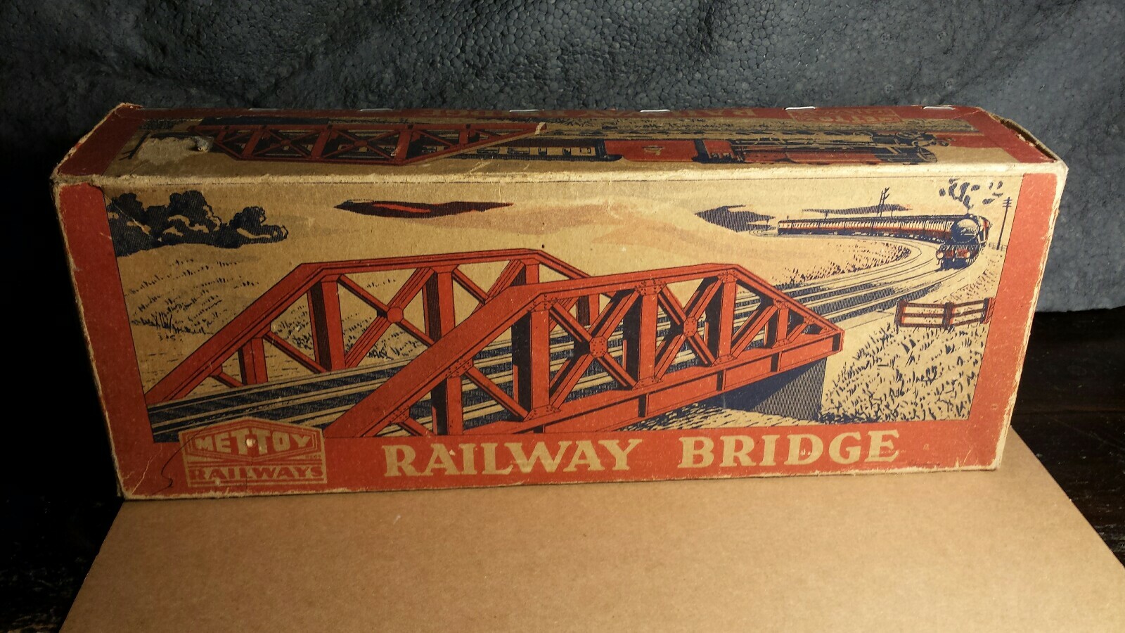 Vintage Mettoy 5619 Railway Bridge O Gauge w/Box 1950s Tin Excellent