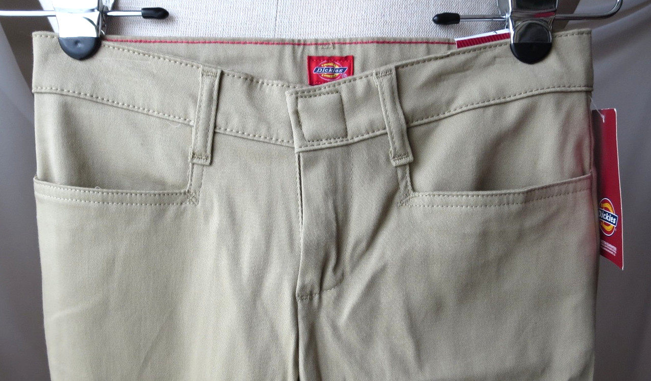 как выглядит DICKIES GIRLS STRETCH KHAKI TAN PANT CLASSIC FIT BOOT CUT LEG SZ 1 NEW фото