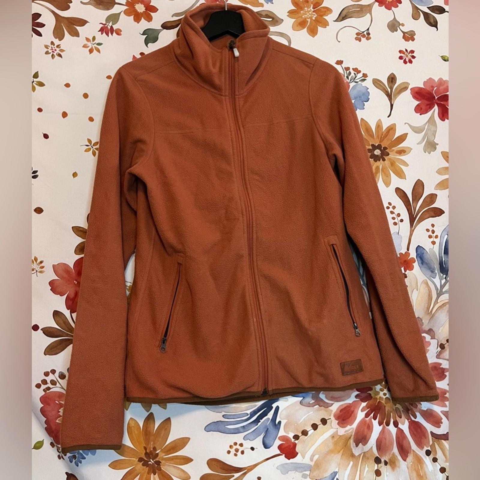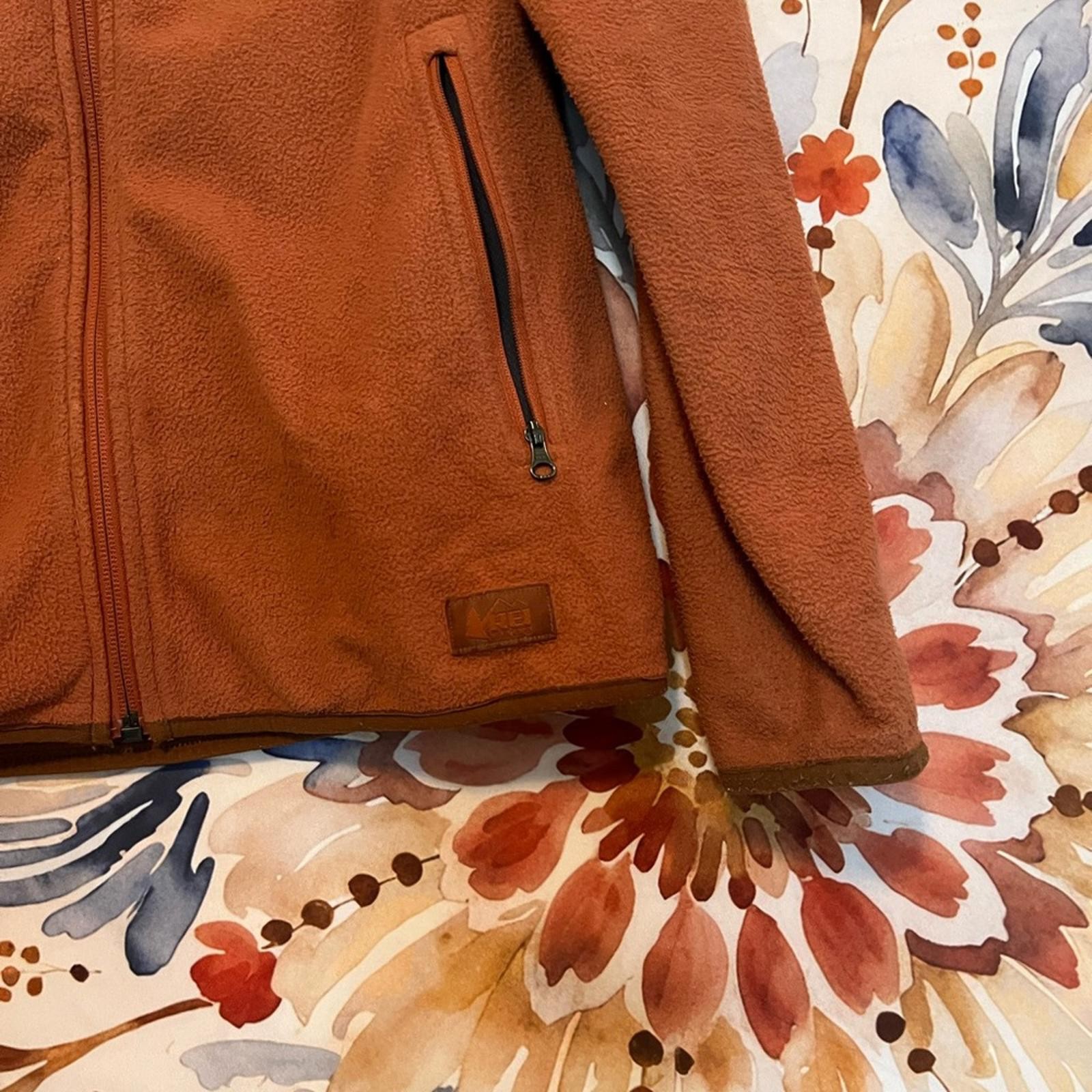 как выглядит REI S Burnt Orange Fleece Full Zip High Neck Pocket Lightweight Spring Jacket фото