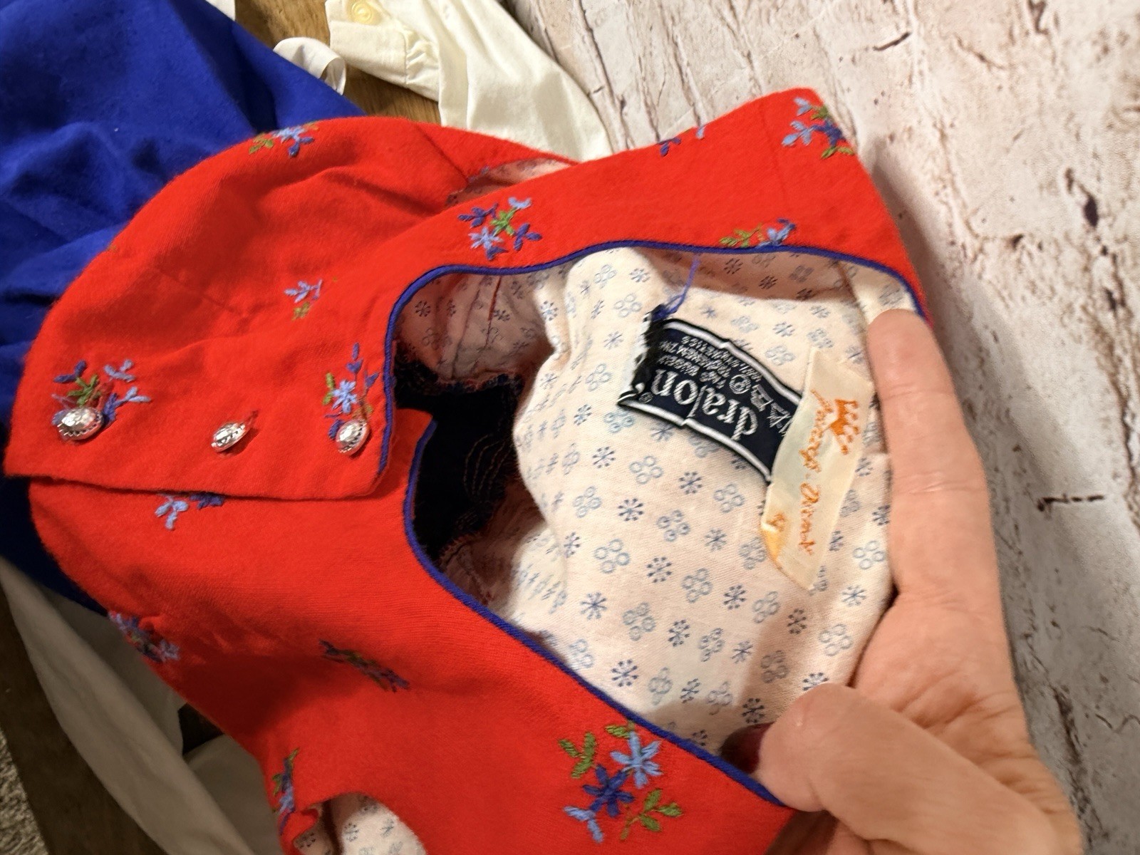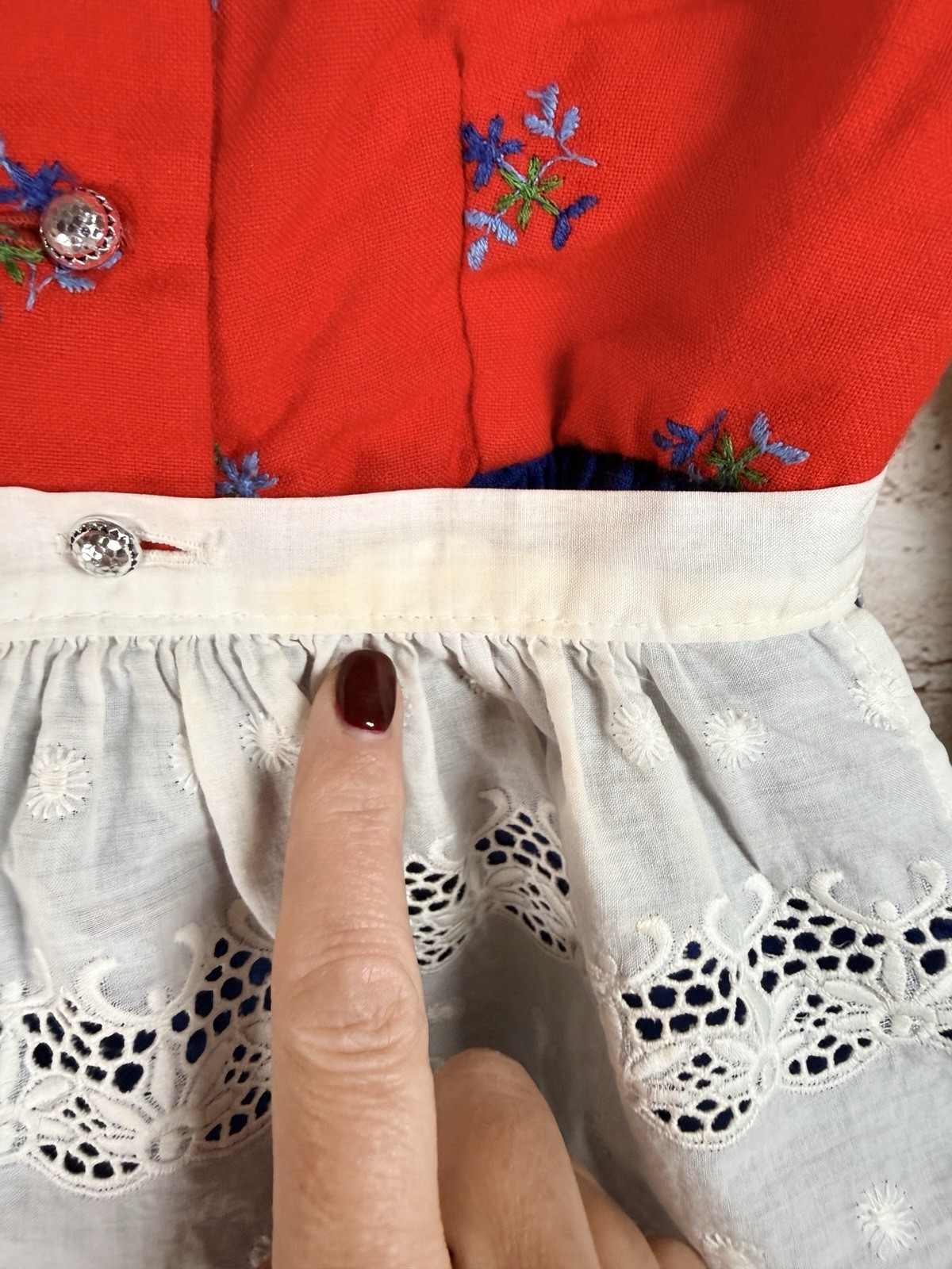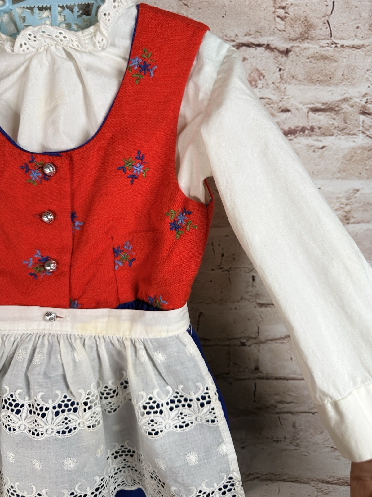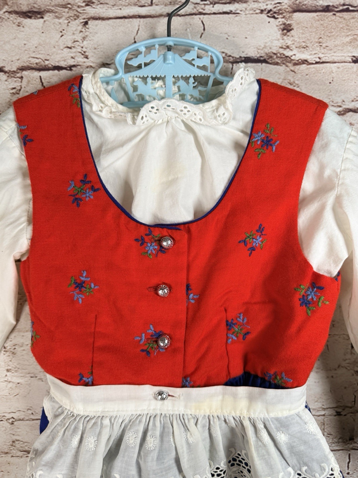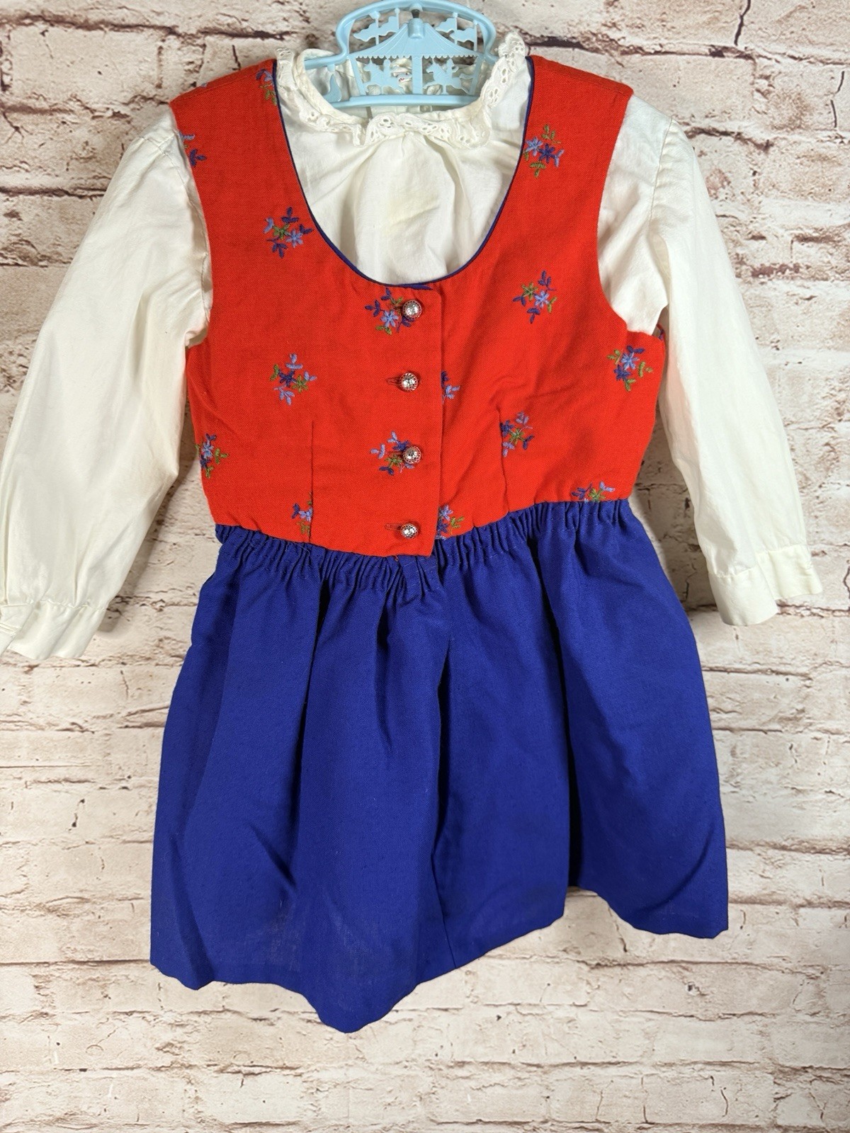 как выглядит Vintage Prinzep Dirndl Baby Red Blue Traditional Dress Apron 3-4T German Austria фото