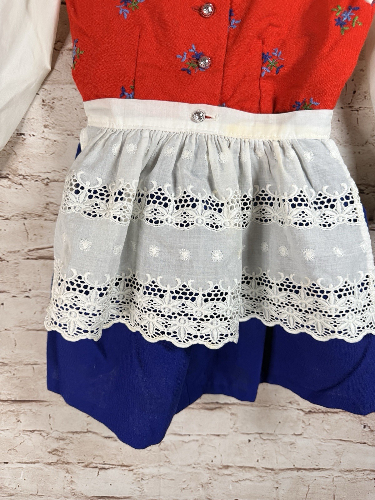 Vintage Prinzep Dirndl Baby Red Blue Traditional Dress Apron 3-4T German Austria