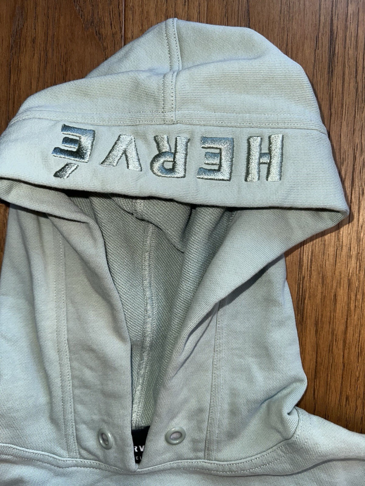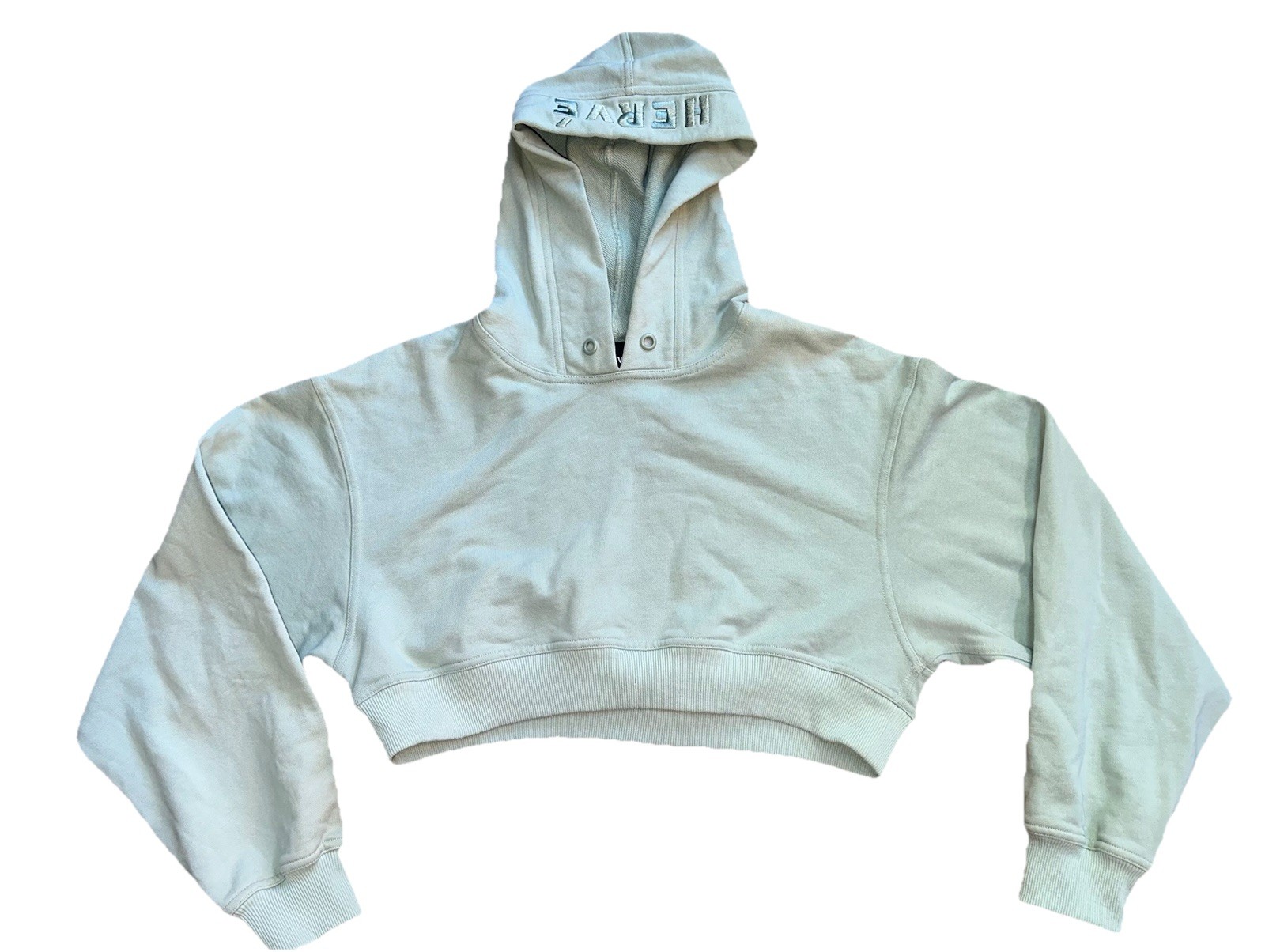 как выглядит Herve by Herve Leger Cropped Hooded Sweatshirt Light Sage Green Size M фото
