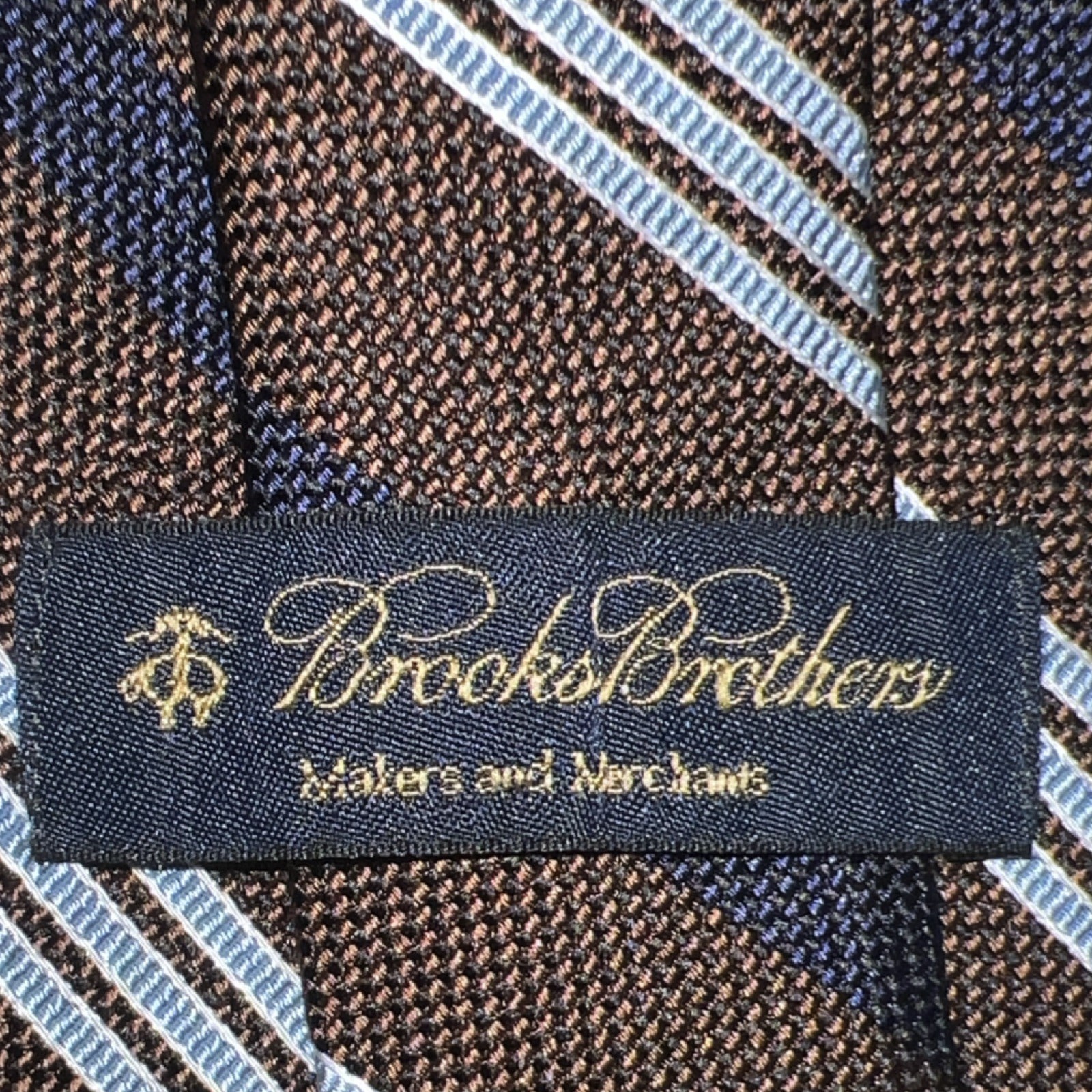 Brooks Brothers Makers and Merchants Silk Brown Blue Striped Textured Men's Tie
