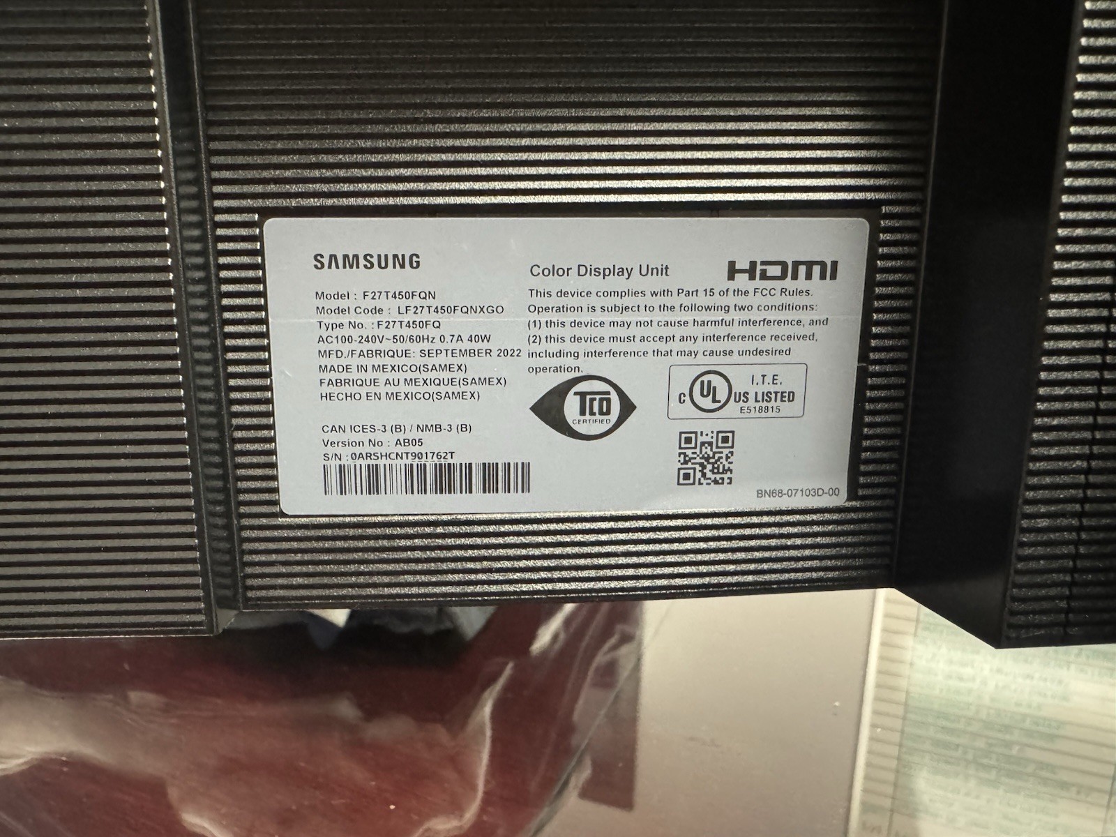 Samsung 27 LED Monitor F27T450FQN FT45 FullHD 1080p 16:9 IPS