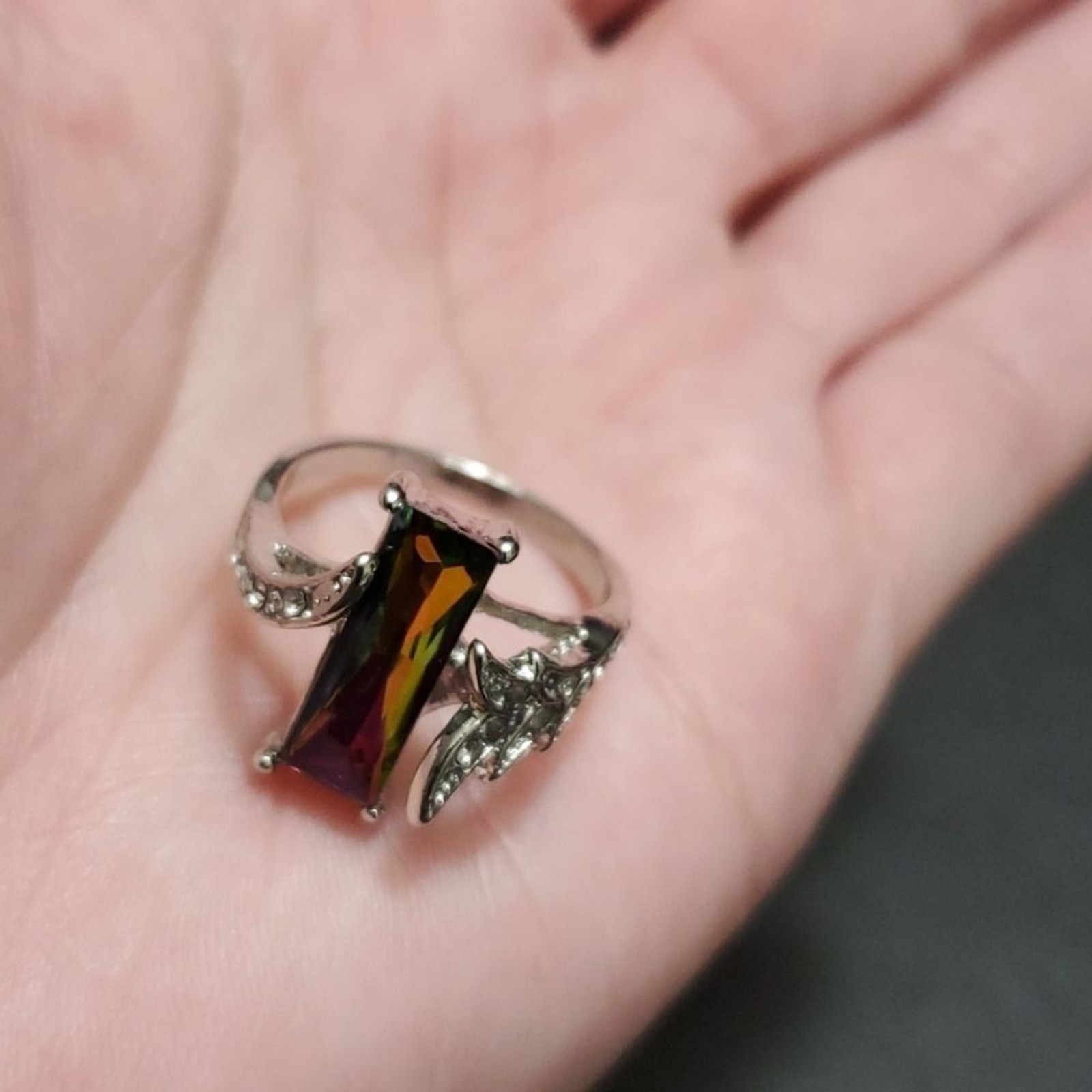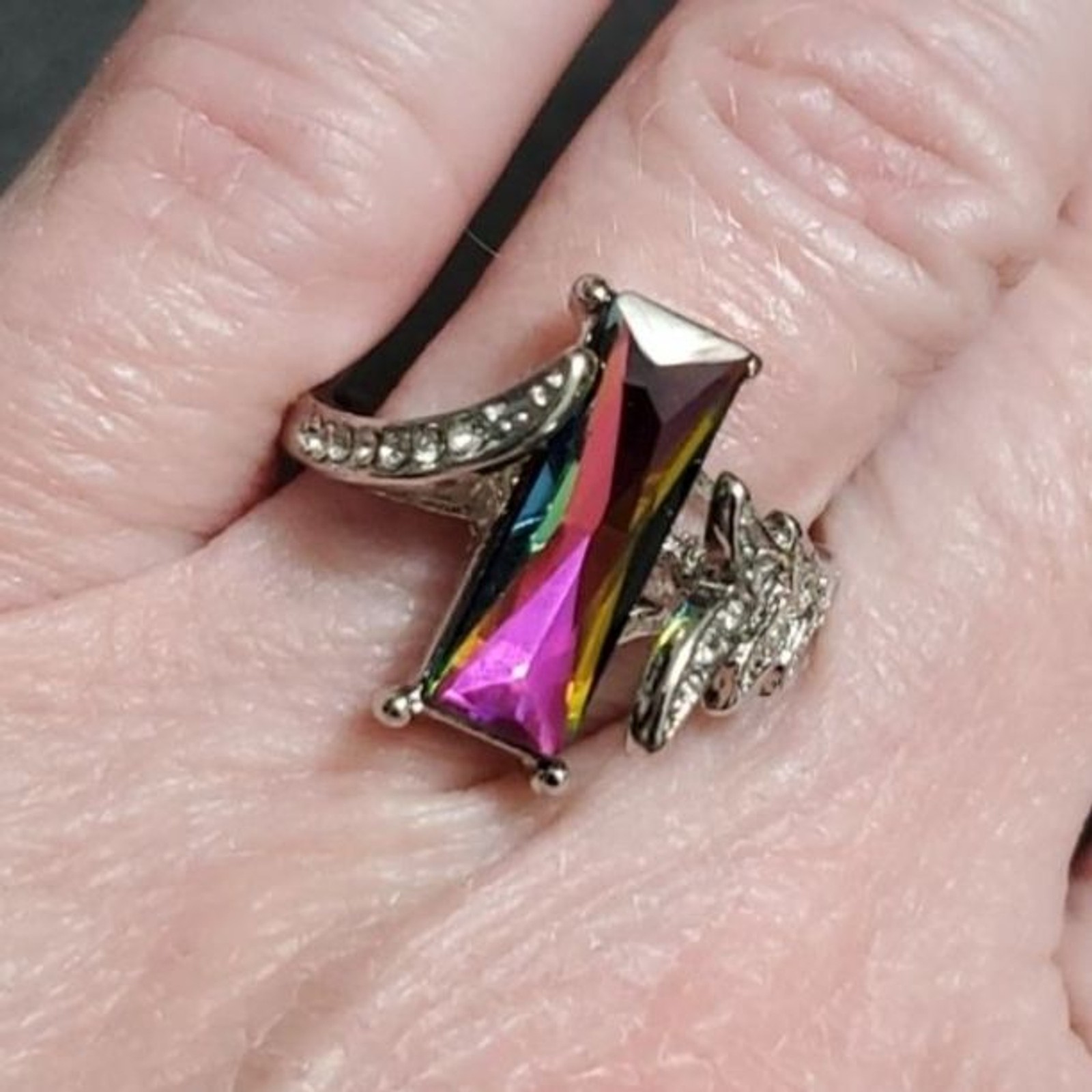 Silver tone rainbow rhinestone ring 7.25
