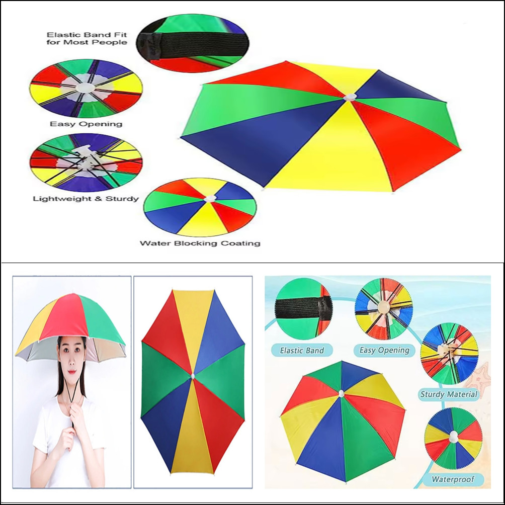 24 Hands Free Umbrella Hat Waterproof Sun Rain Protection Adjustable Headband