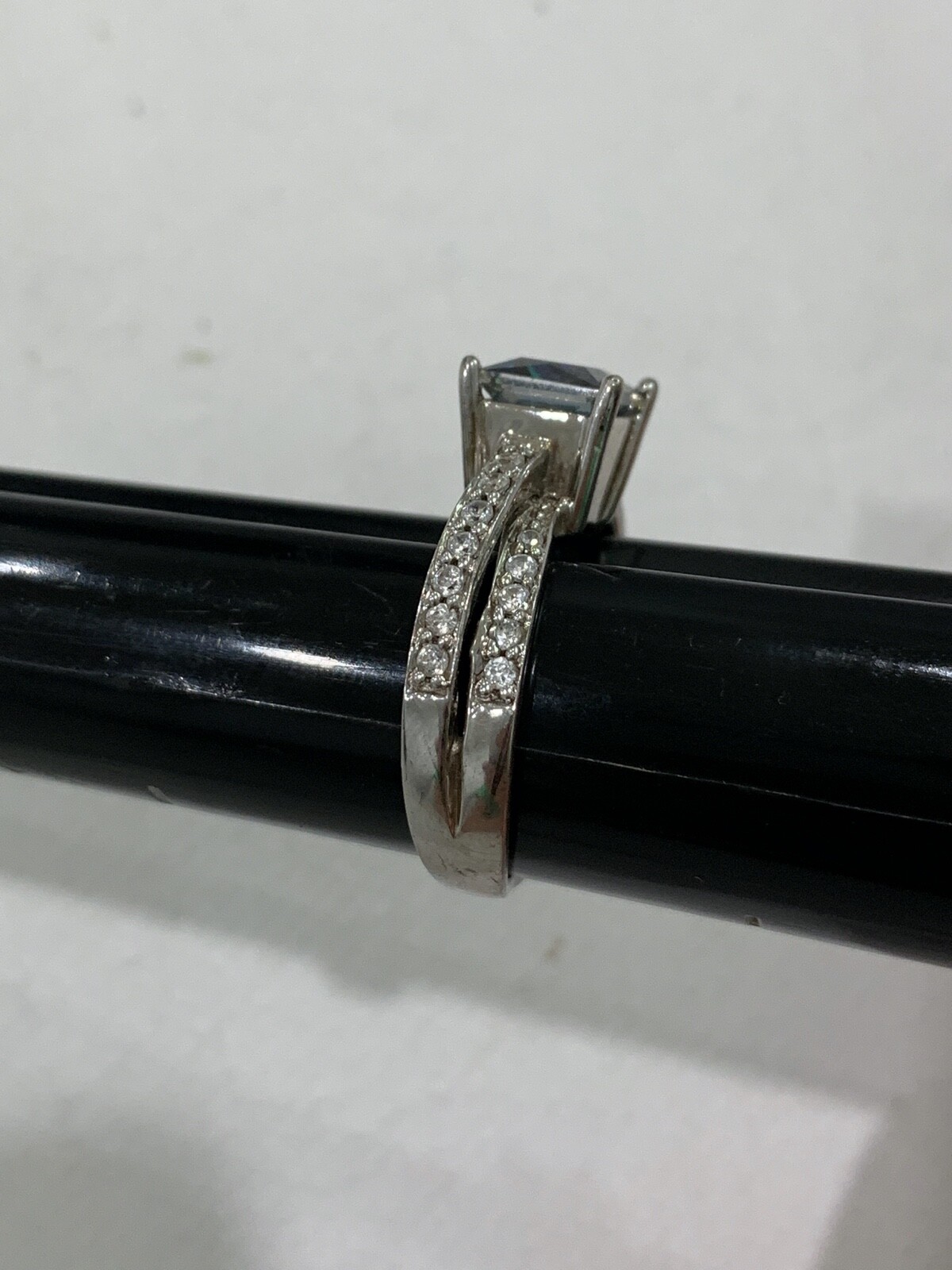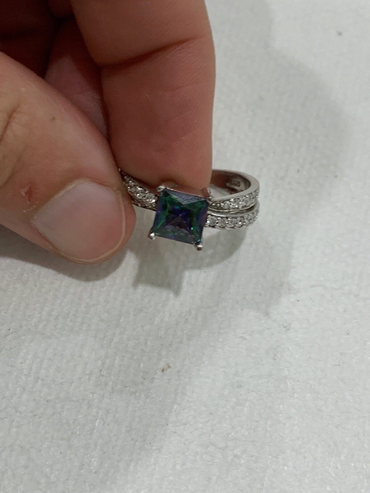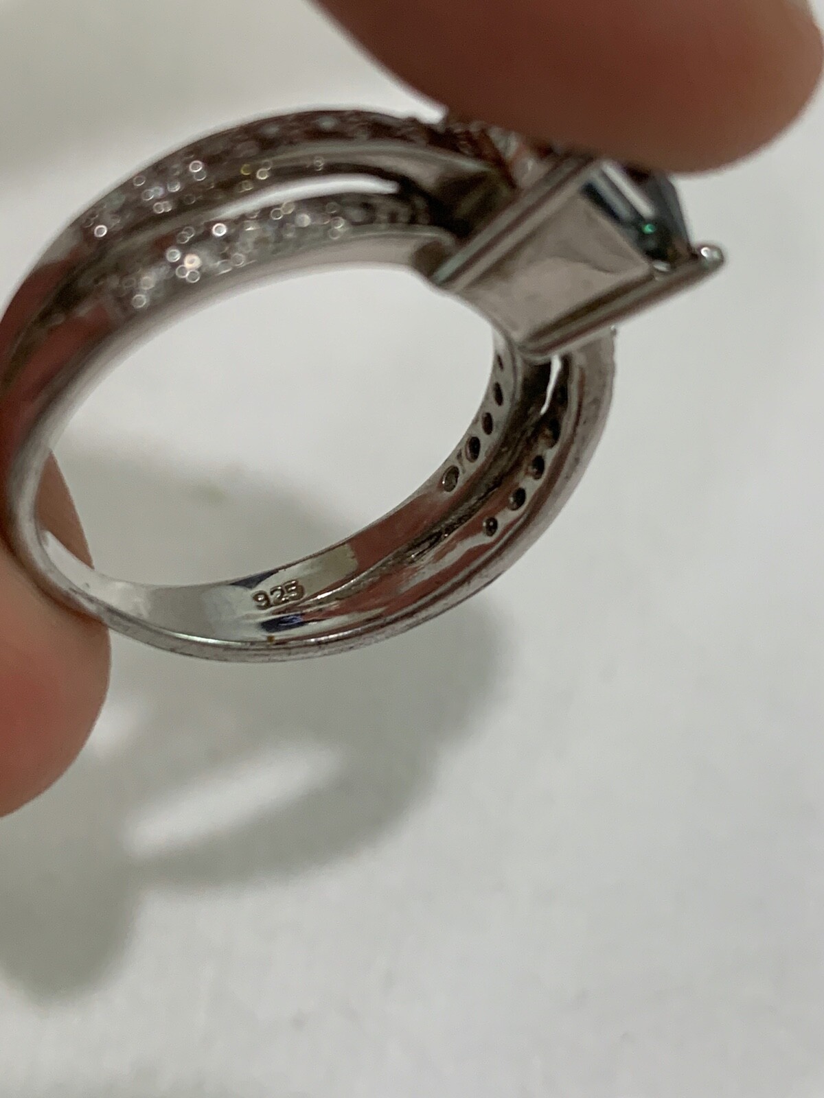 как выглядит Vintage Sterling Silver Double Band Ring Greenish Blue Crystal or Stone Size 8 фото