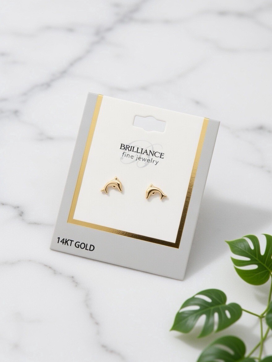 14K Solid Gold Dolphin Stud Earrings Cute Minimalist Dolphin Studs