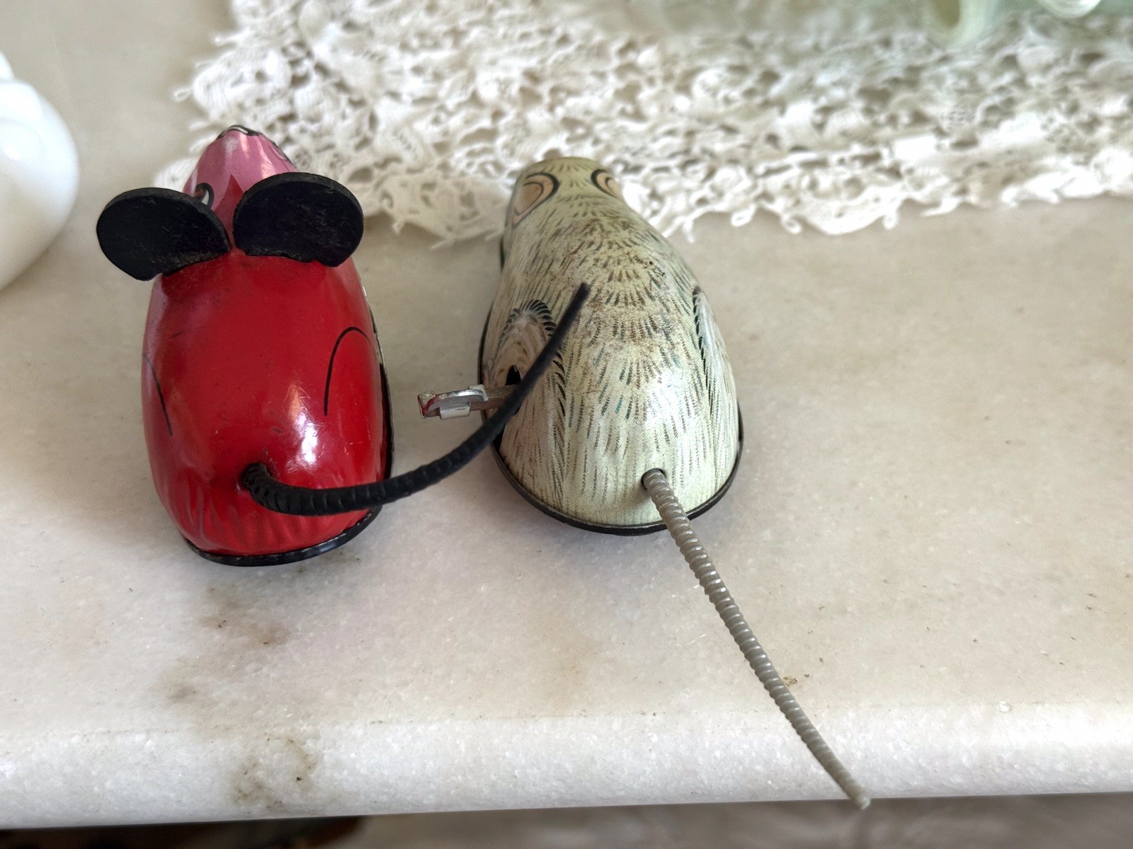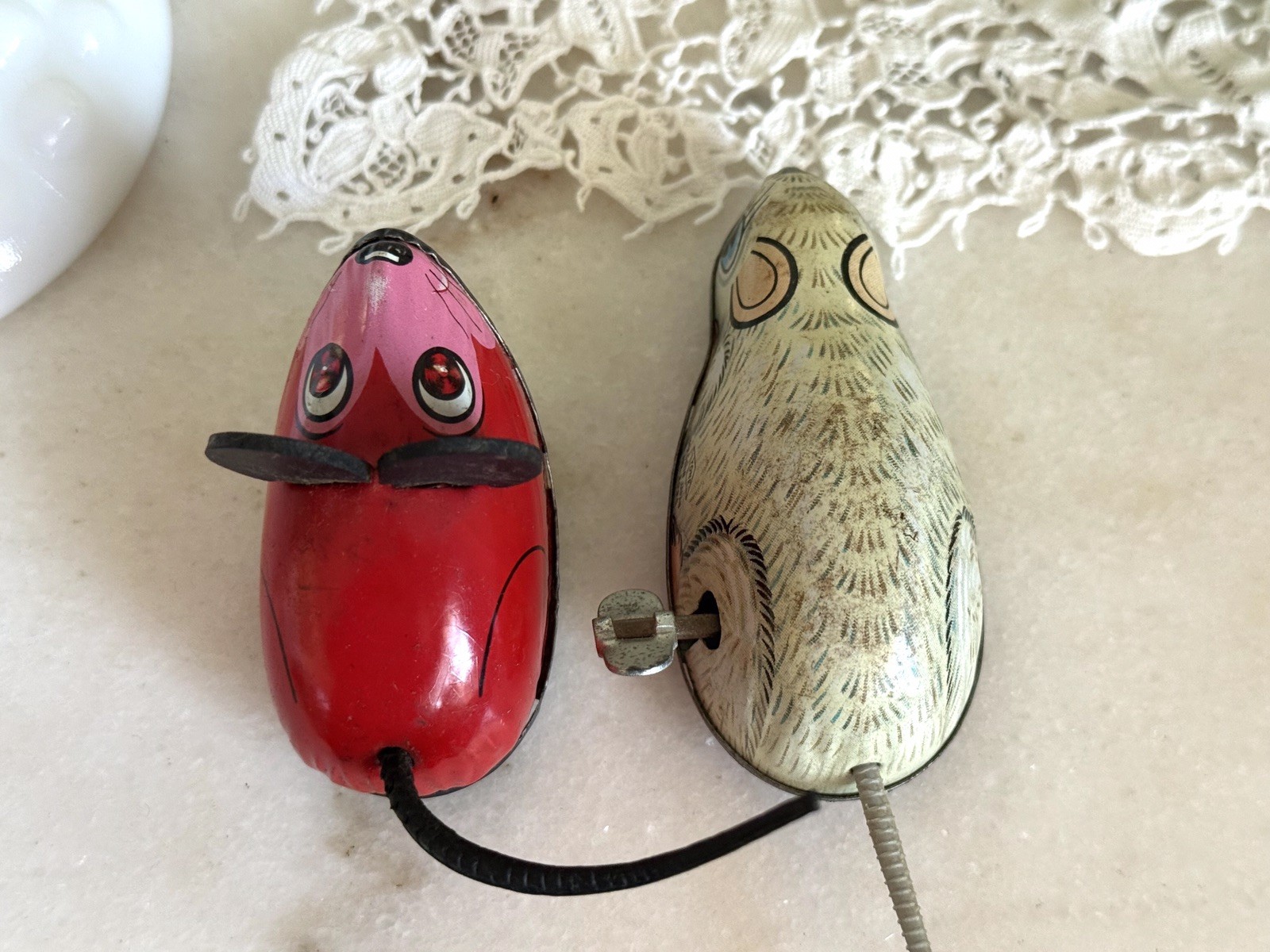 как выглядит Vtg Set 2 Kinzoku K Tone Metal Tin Litho Toys Red Mouse Cream Mouse фото