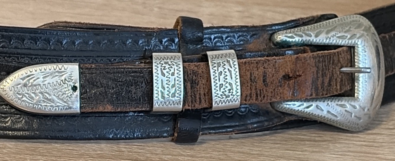 Vintage Ranger Style Western Belt Tooled Black Leather Embossed Buckle 46