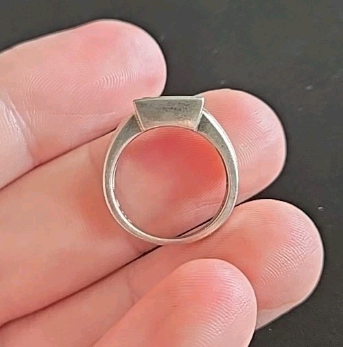 как выглядит VINTAGE STERLING SILVER THREE EMERALD CUT AMETHYSTS BAND RING фото