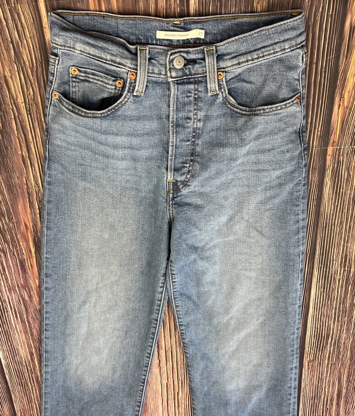 Levi's Premium Ribcage Straight Jeans Womens 27x31 Light Wash High Rise Stretch