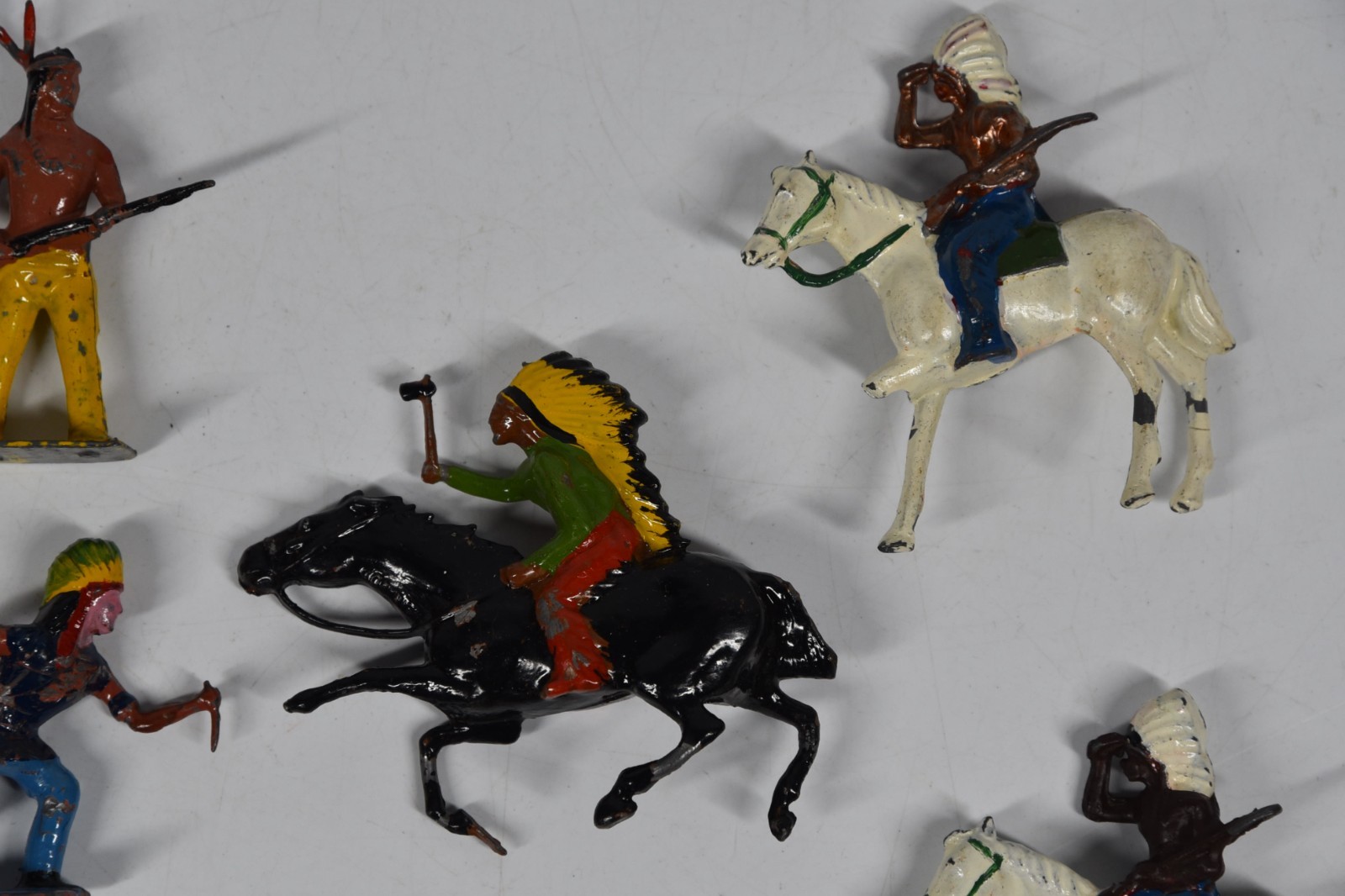 14 Vintage Britains Toy Soldiers Native American Cowboy Metal Hand Painted Lot