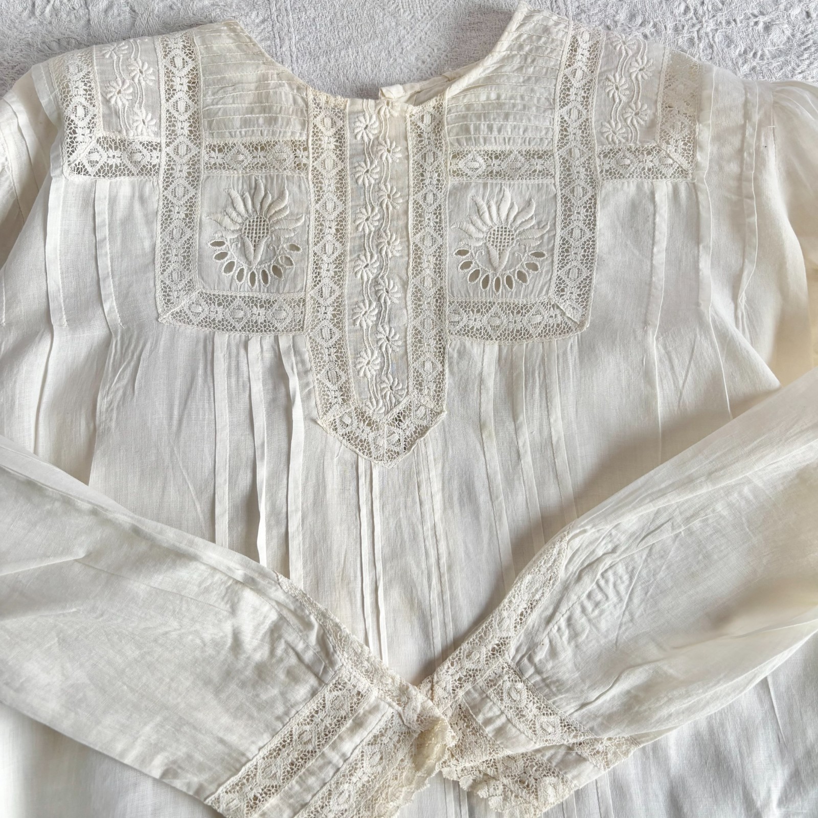 Antique Edwardian White Embroidered Lace Bodice Shirtwaist Blouse